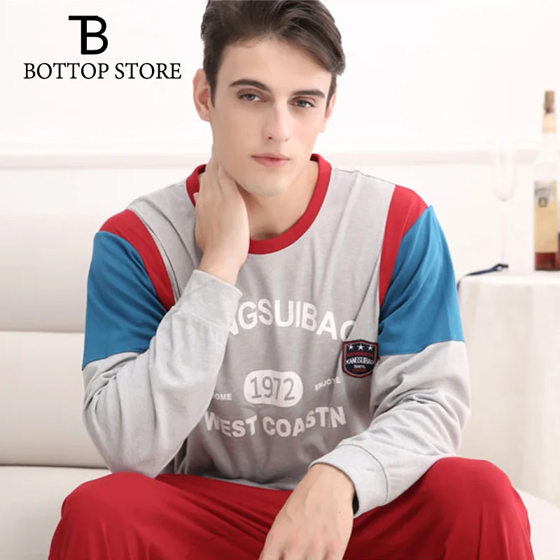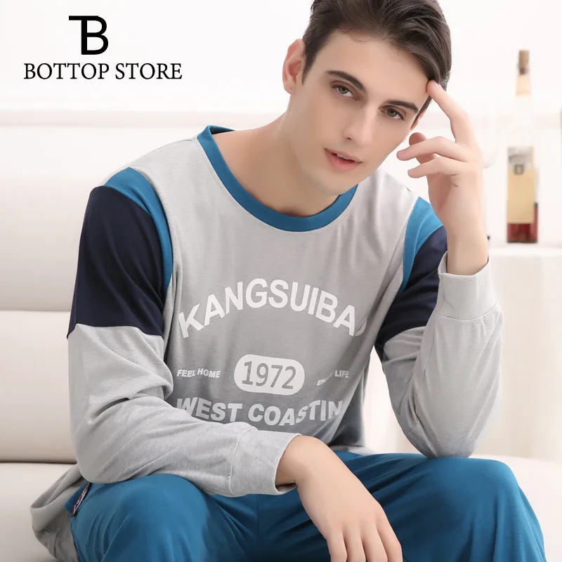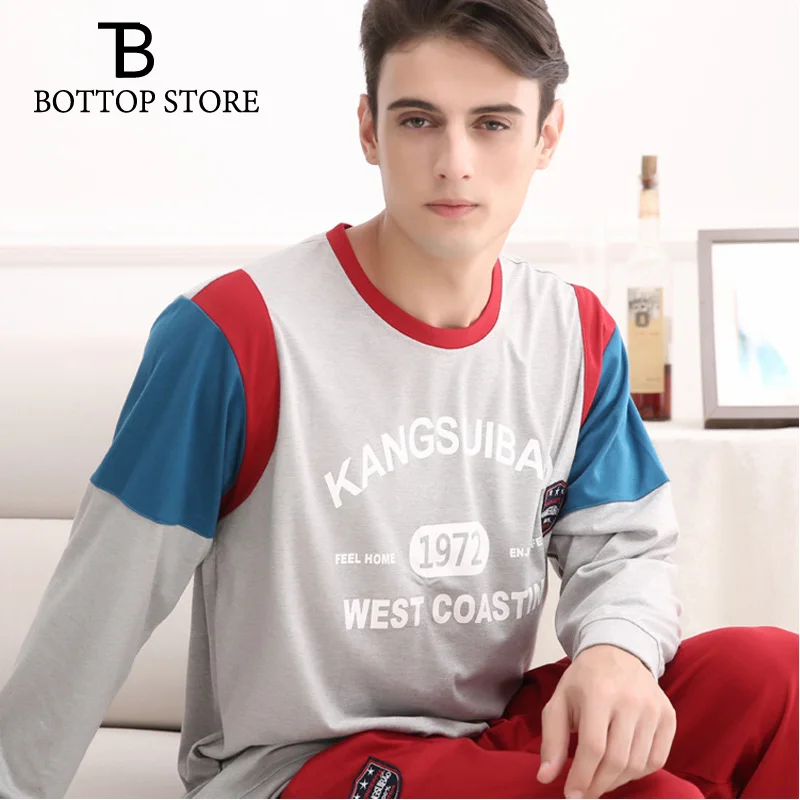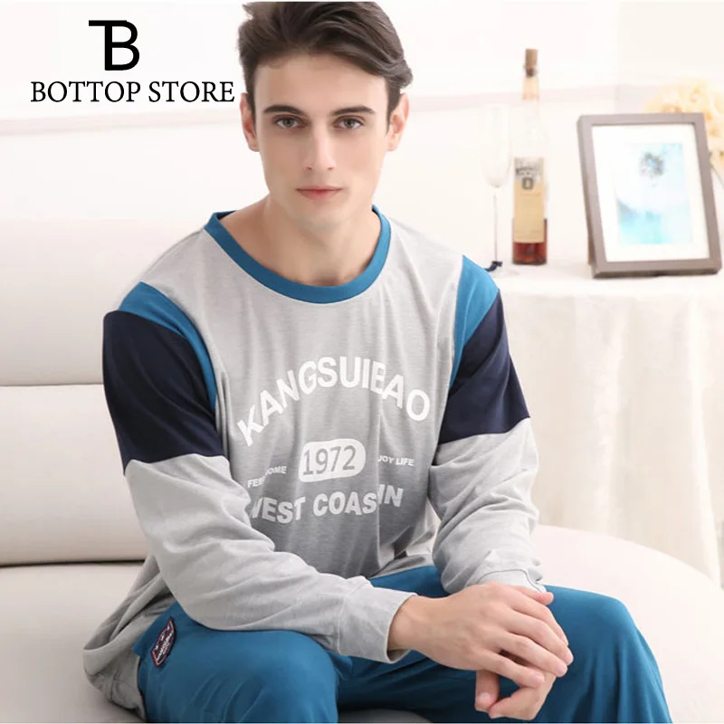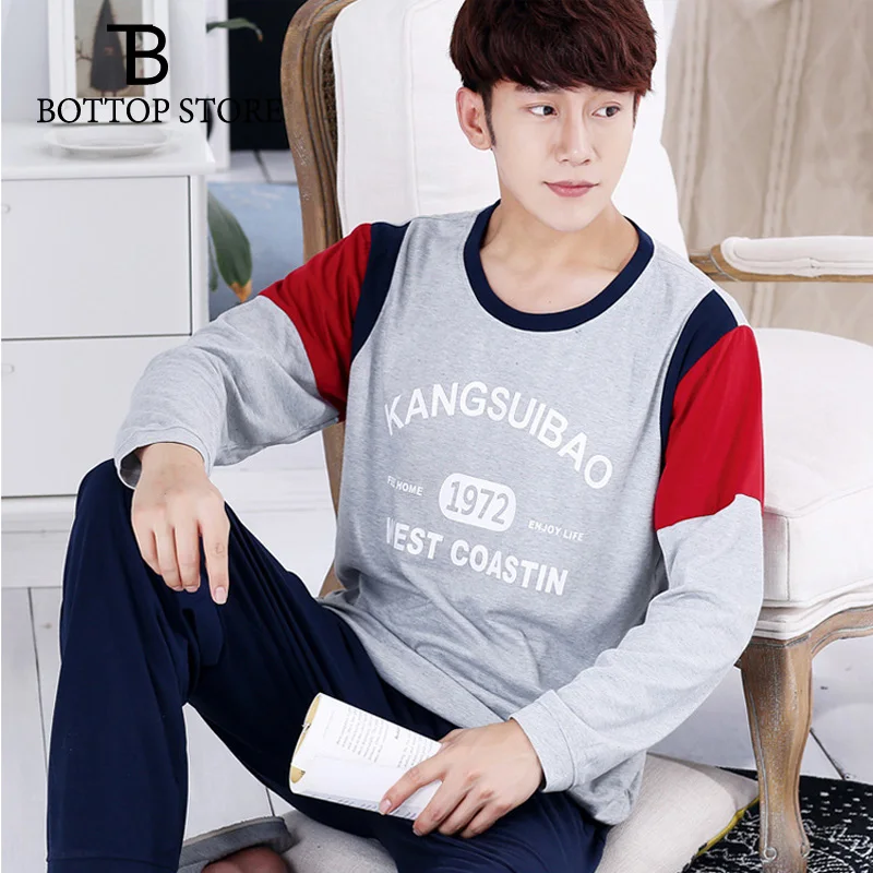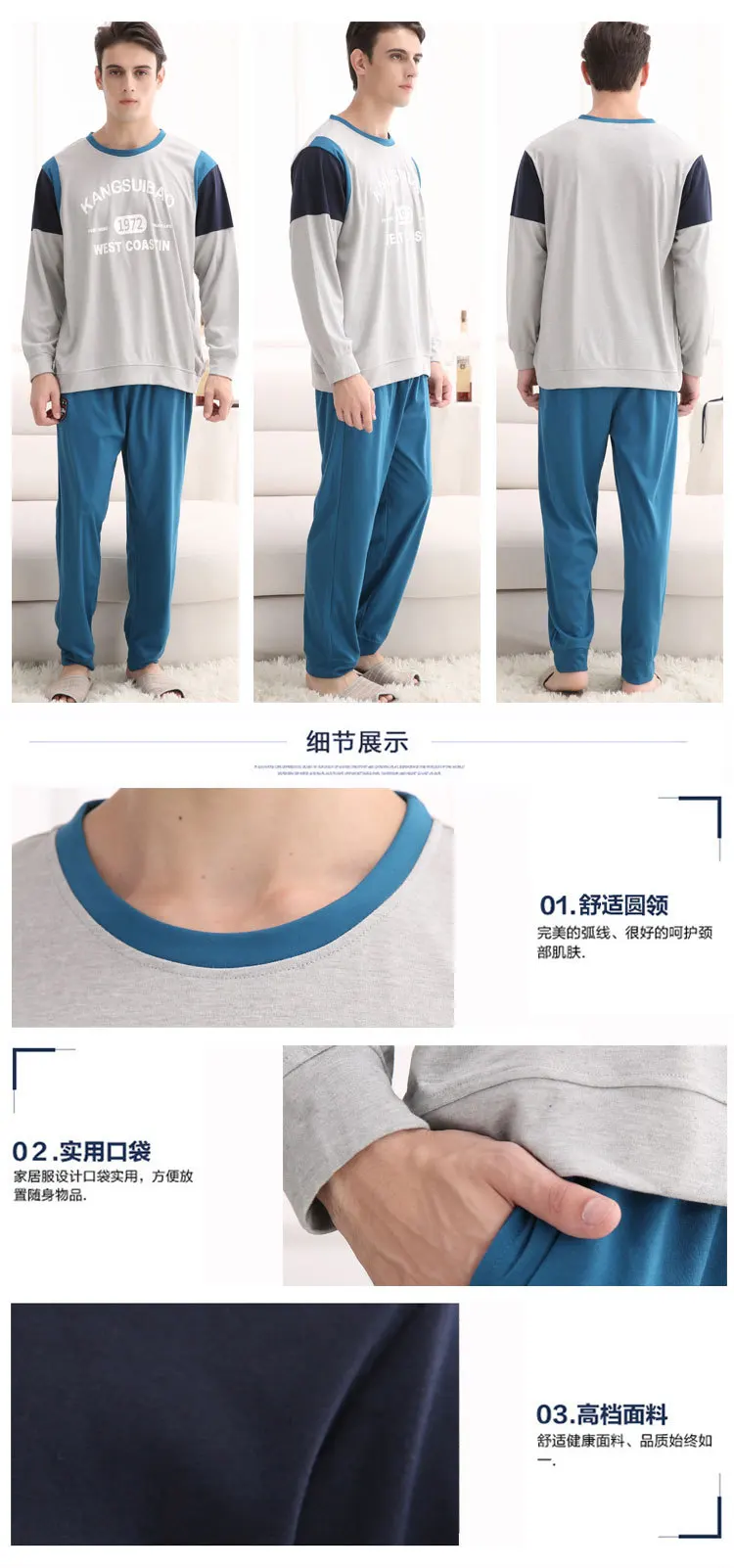Item Name: Men’s Cotton Sleepwear Set Pajamas Autumn Winter Casual Long Sleeves Youth Man Cotton T Shirts Male Home Leisure Suit Homewear