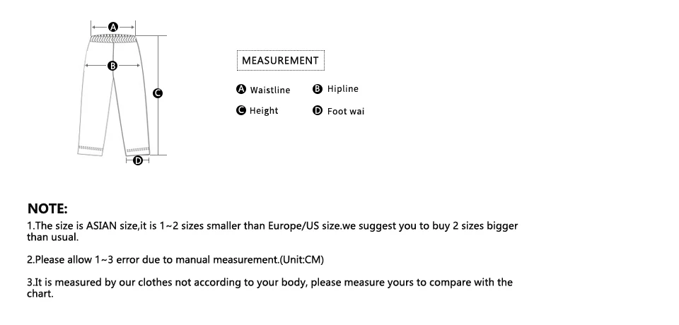size Waist circumference Hips Thigh circumference Foot mouth front rise BACK RISE Pants long