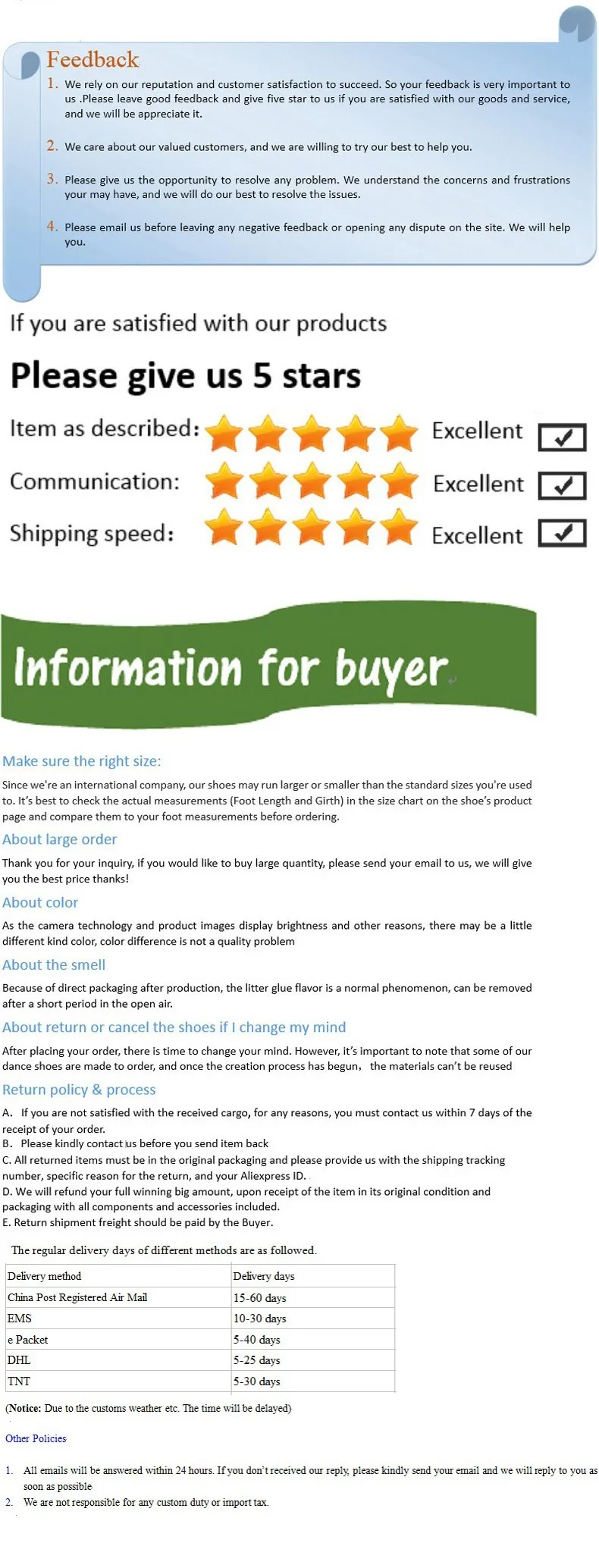 Note 3: Since we send shoes as you ordered, if there is a need of