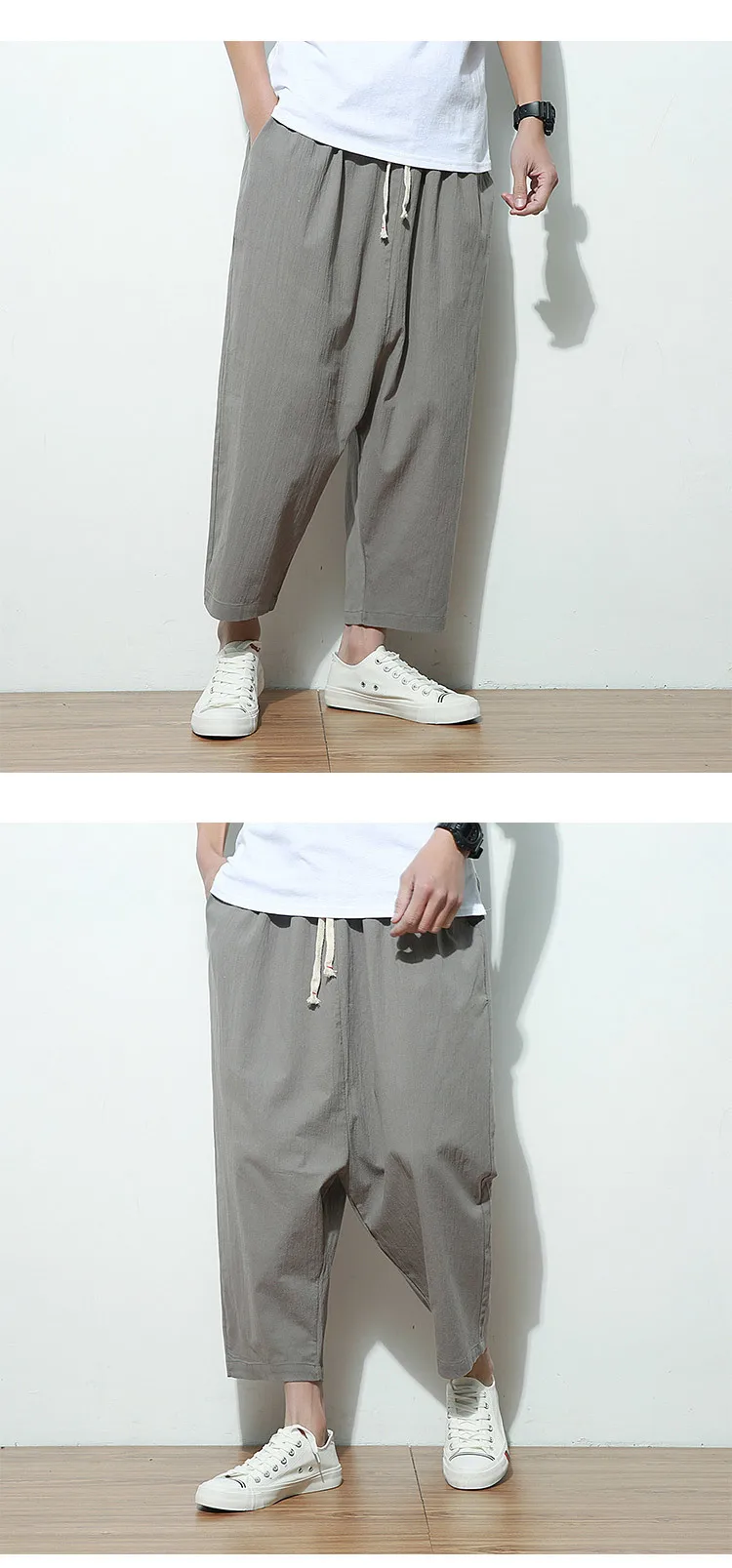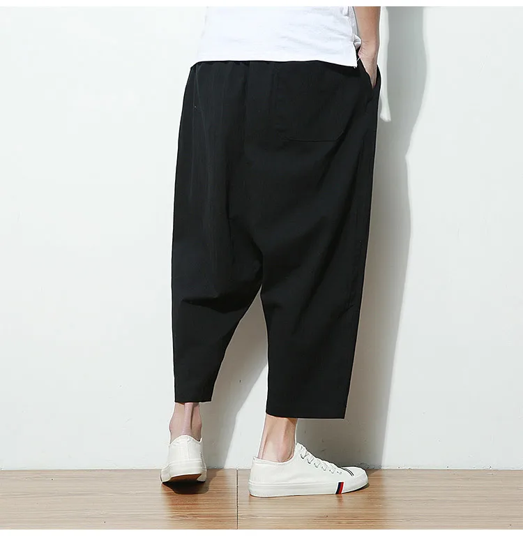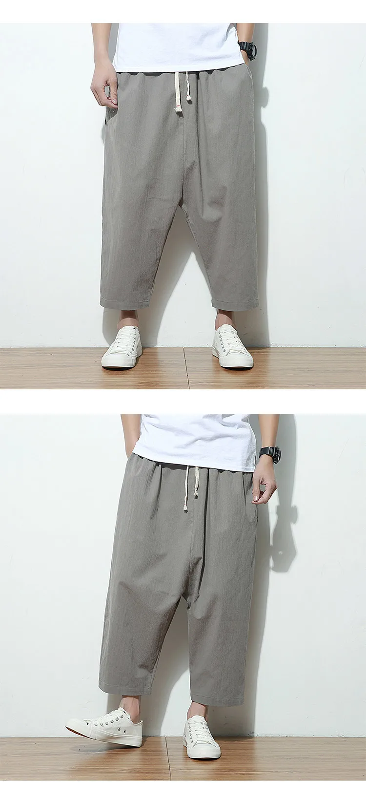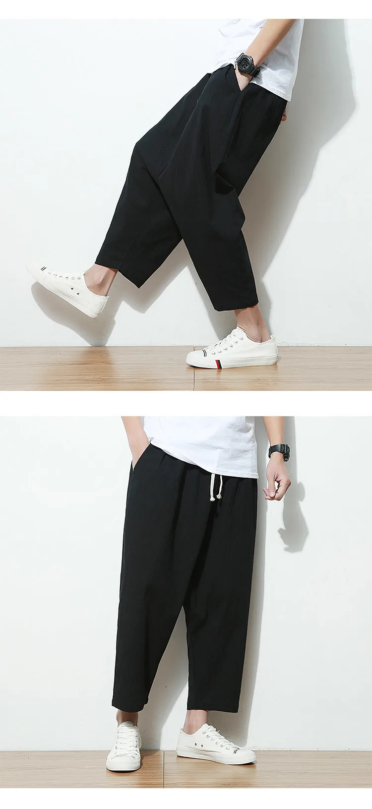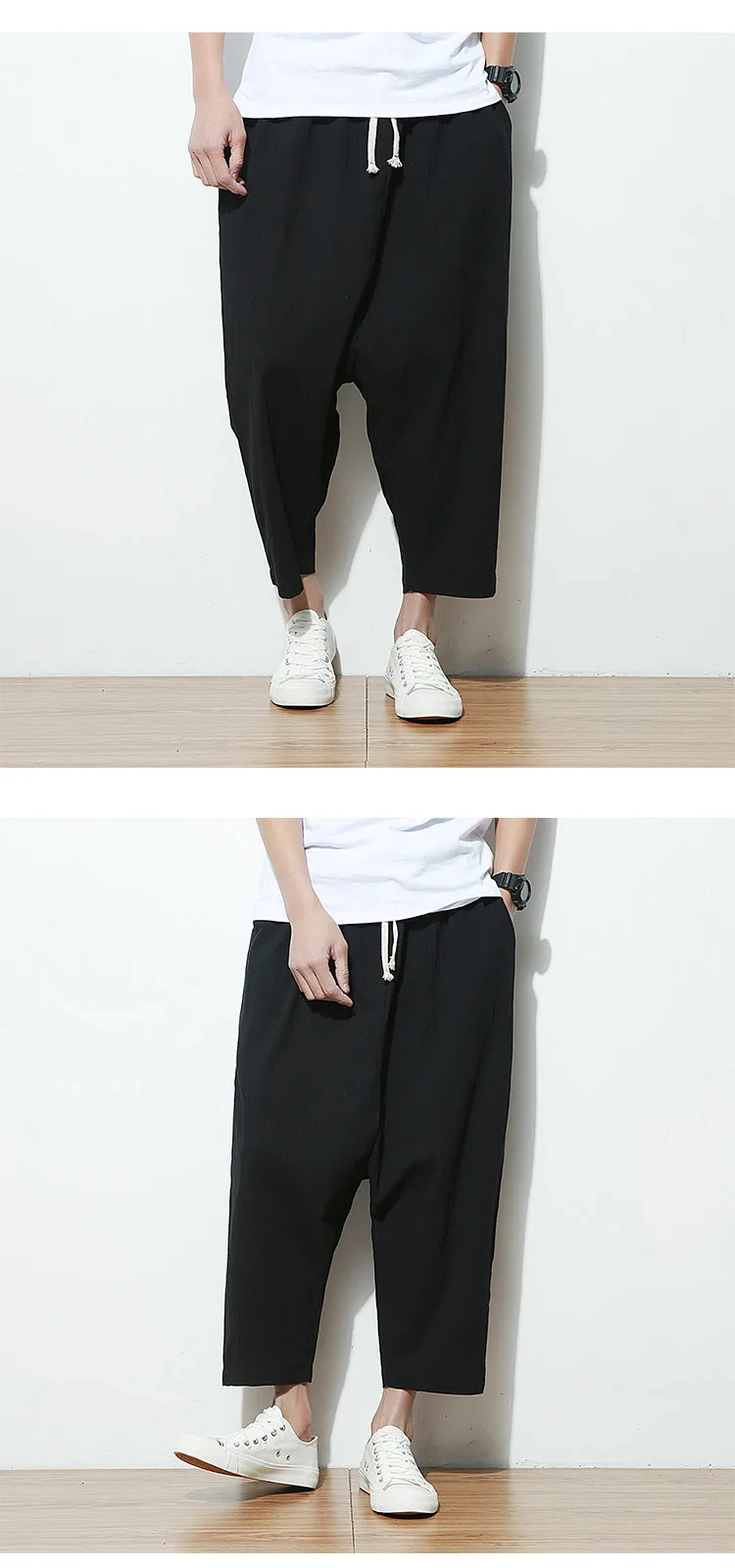 Men’s Summer Loose Large Size Ankle length Slacks Men wide leg Jogger pants Men low drop crotch baggy Trousers A60205