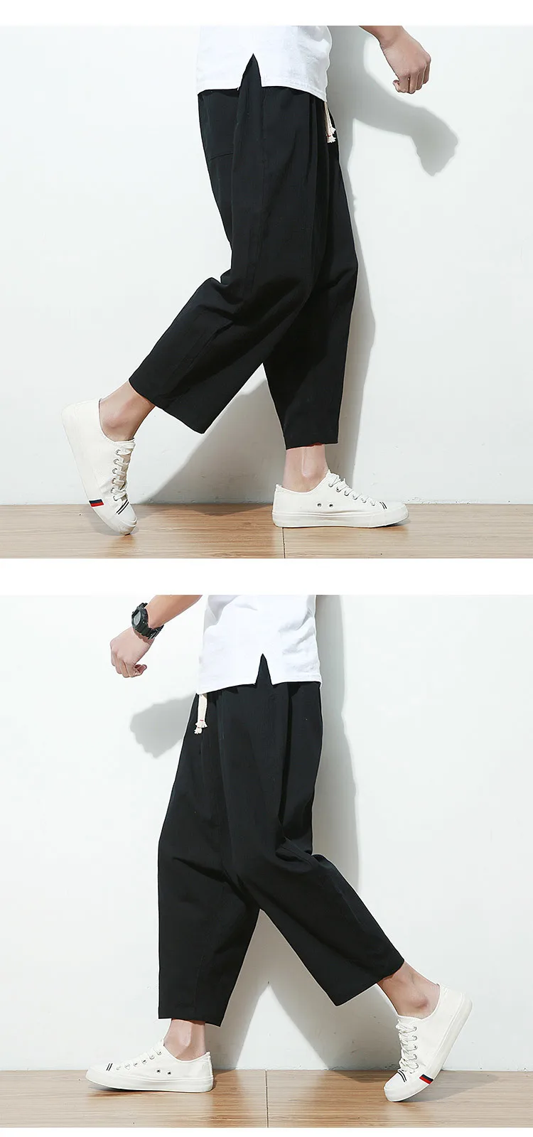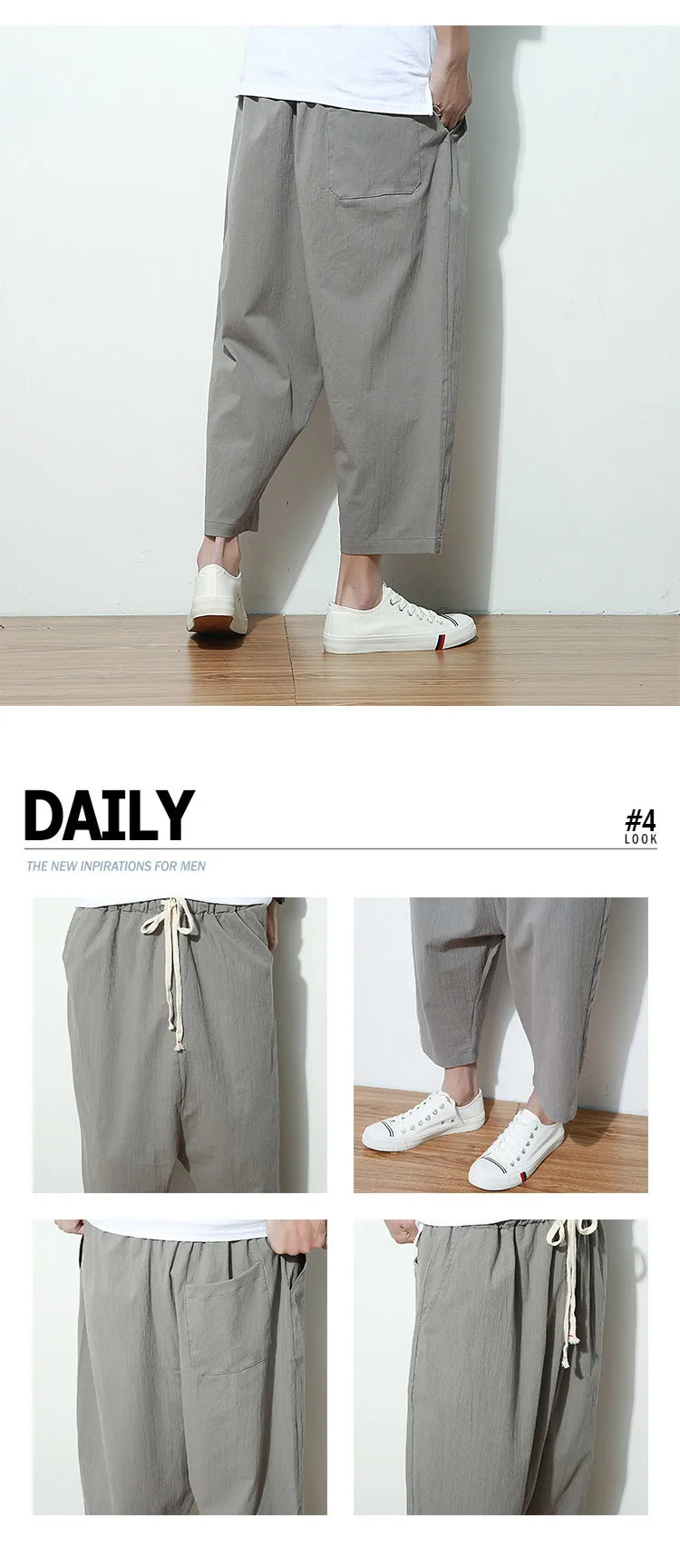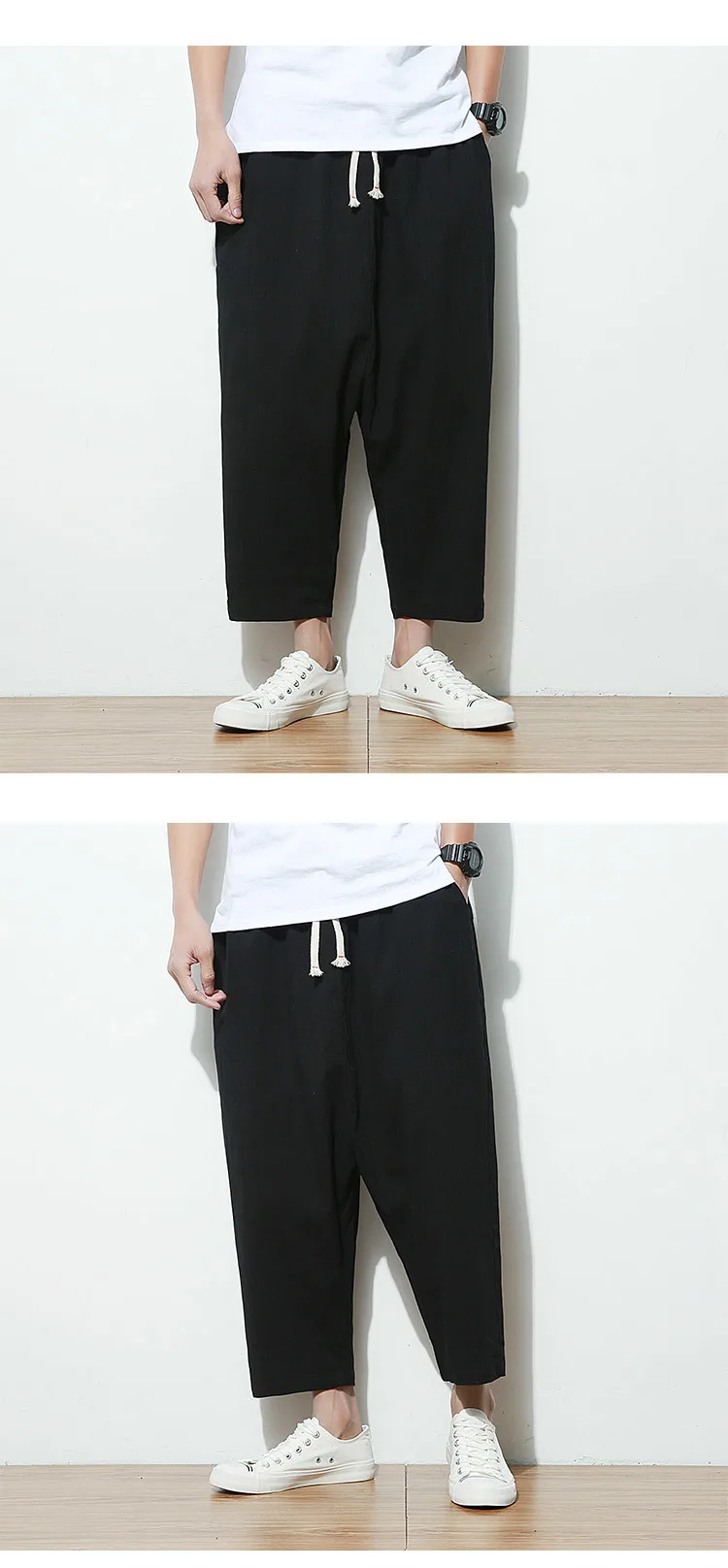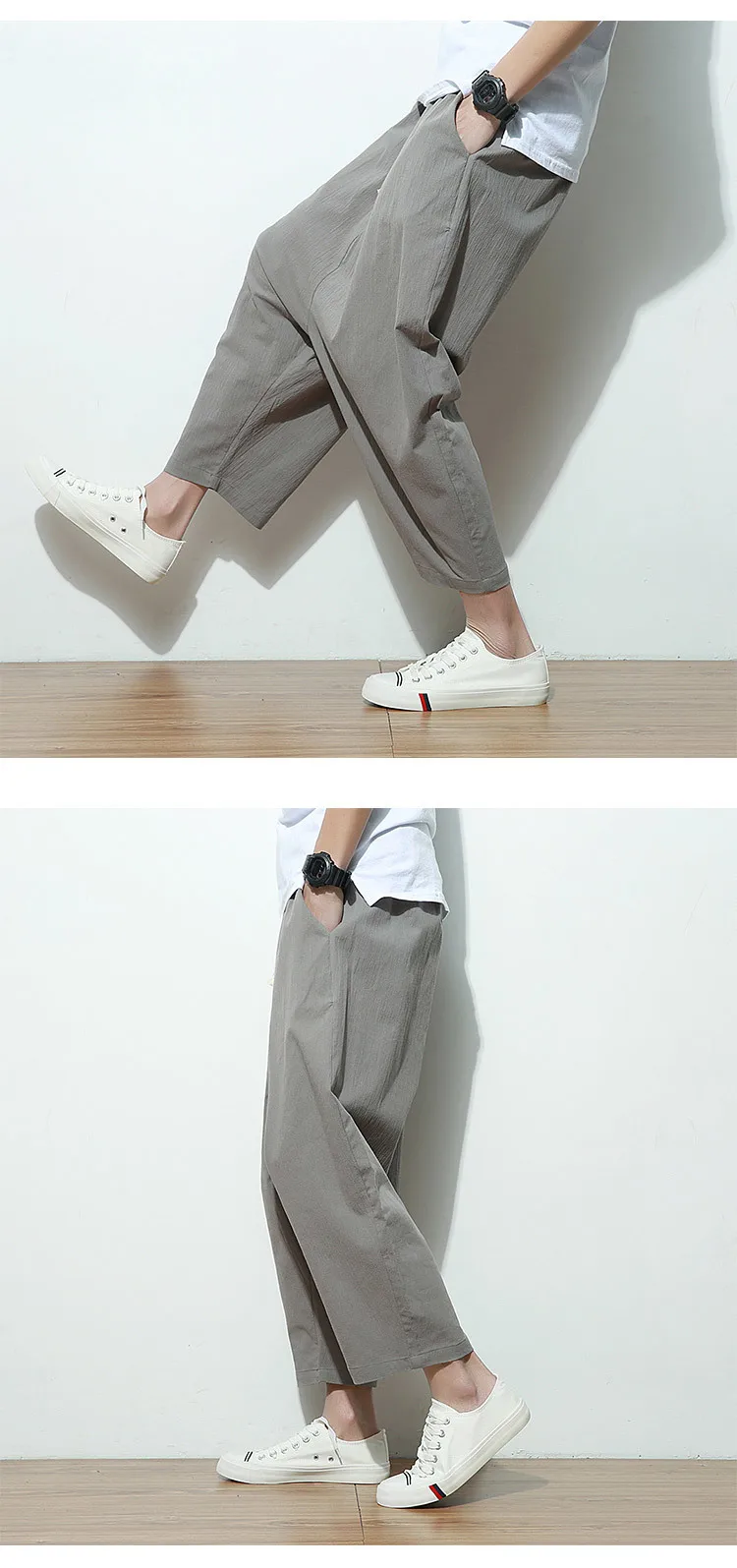 Men’s Summer Loose Large Size Ankle length Slacks Men wide leg Jogger pants Men low drop crotch baggy Trousers A60205