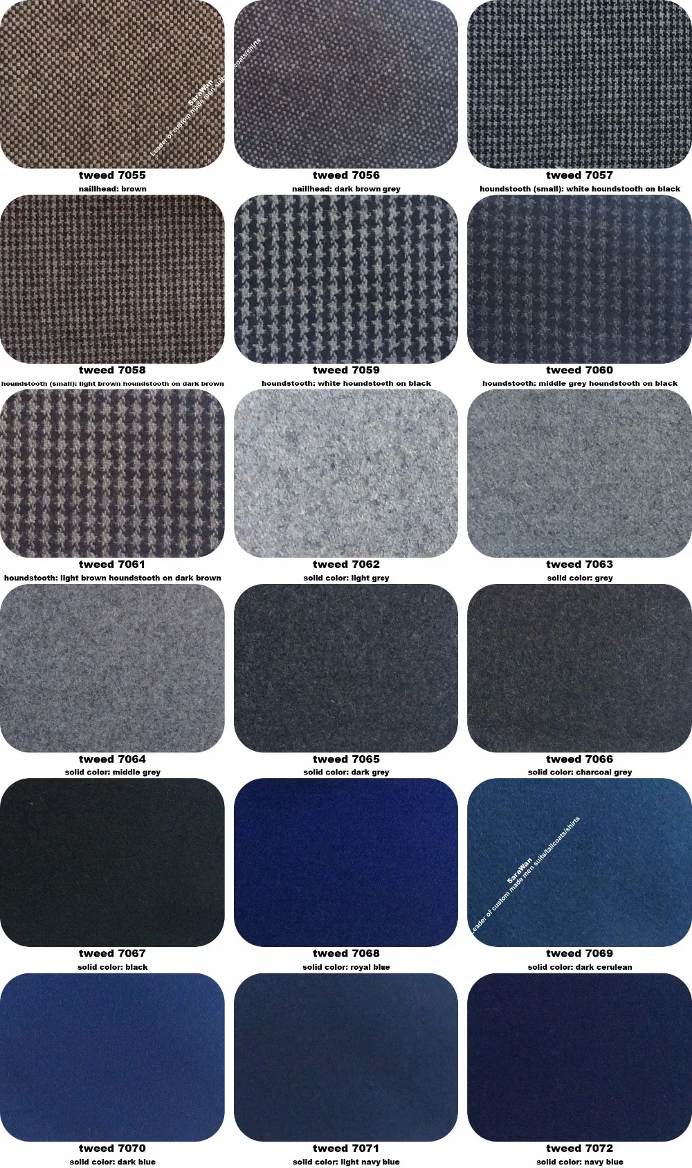 1.1.1 Multiple choices for colors and fabrics (here are the most frequently used ones, please feel free to contact me for other colors or fabrics) :