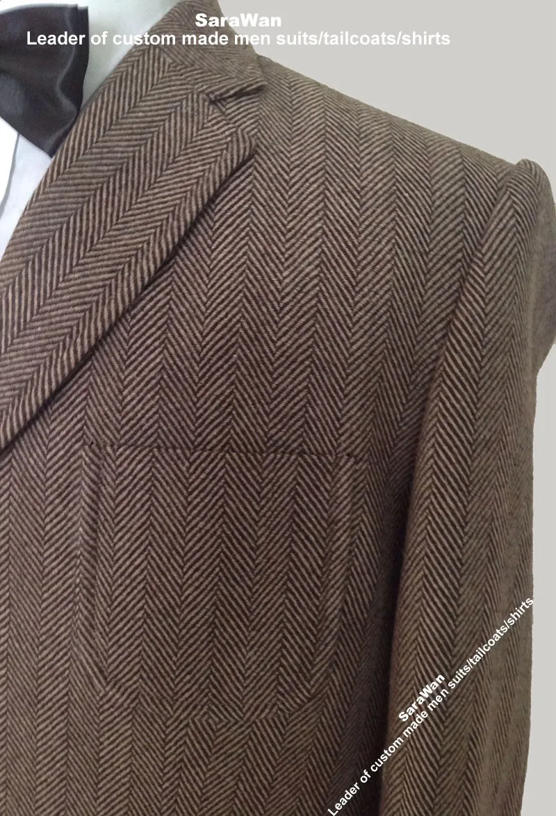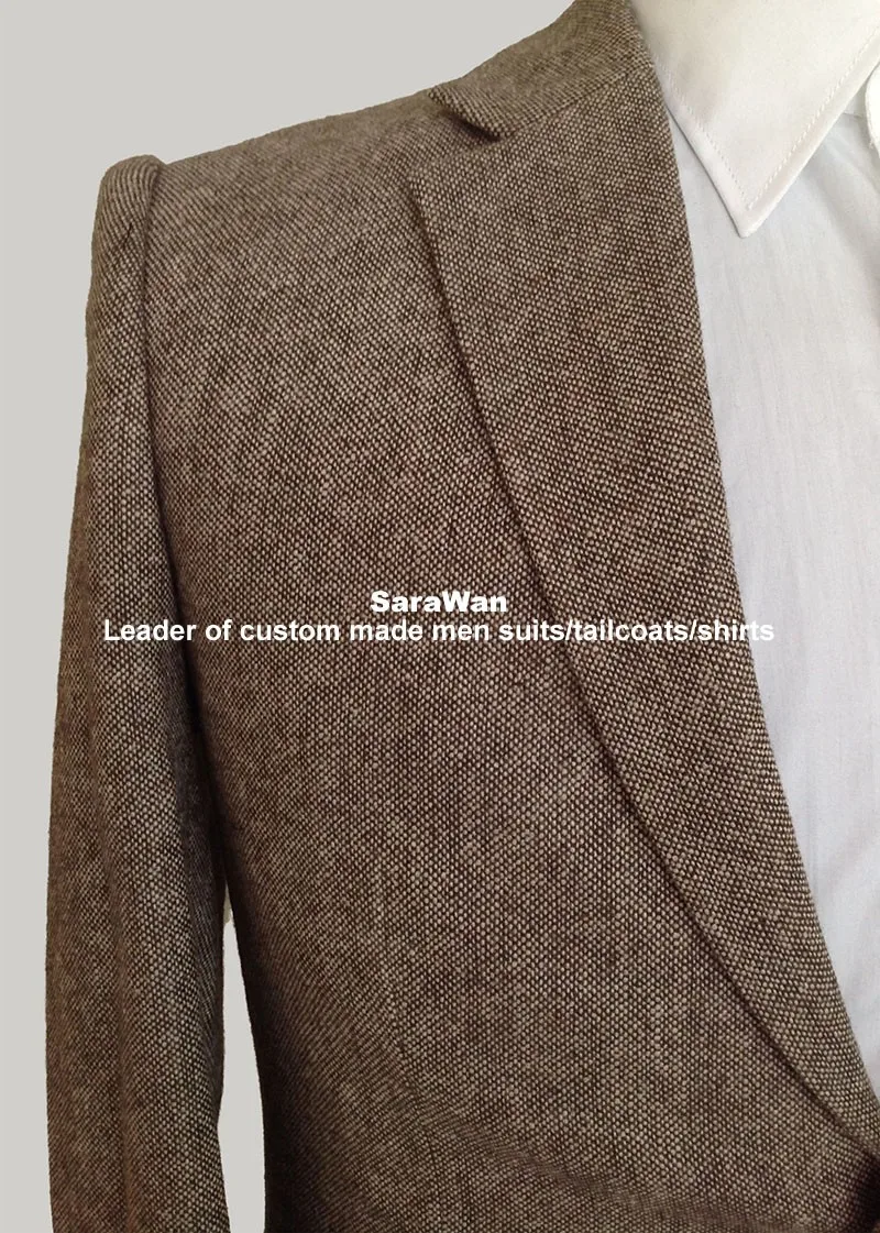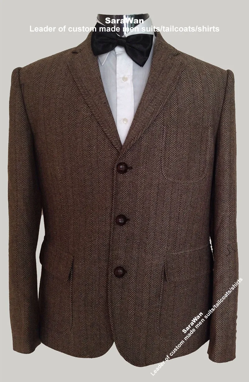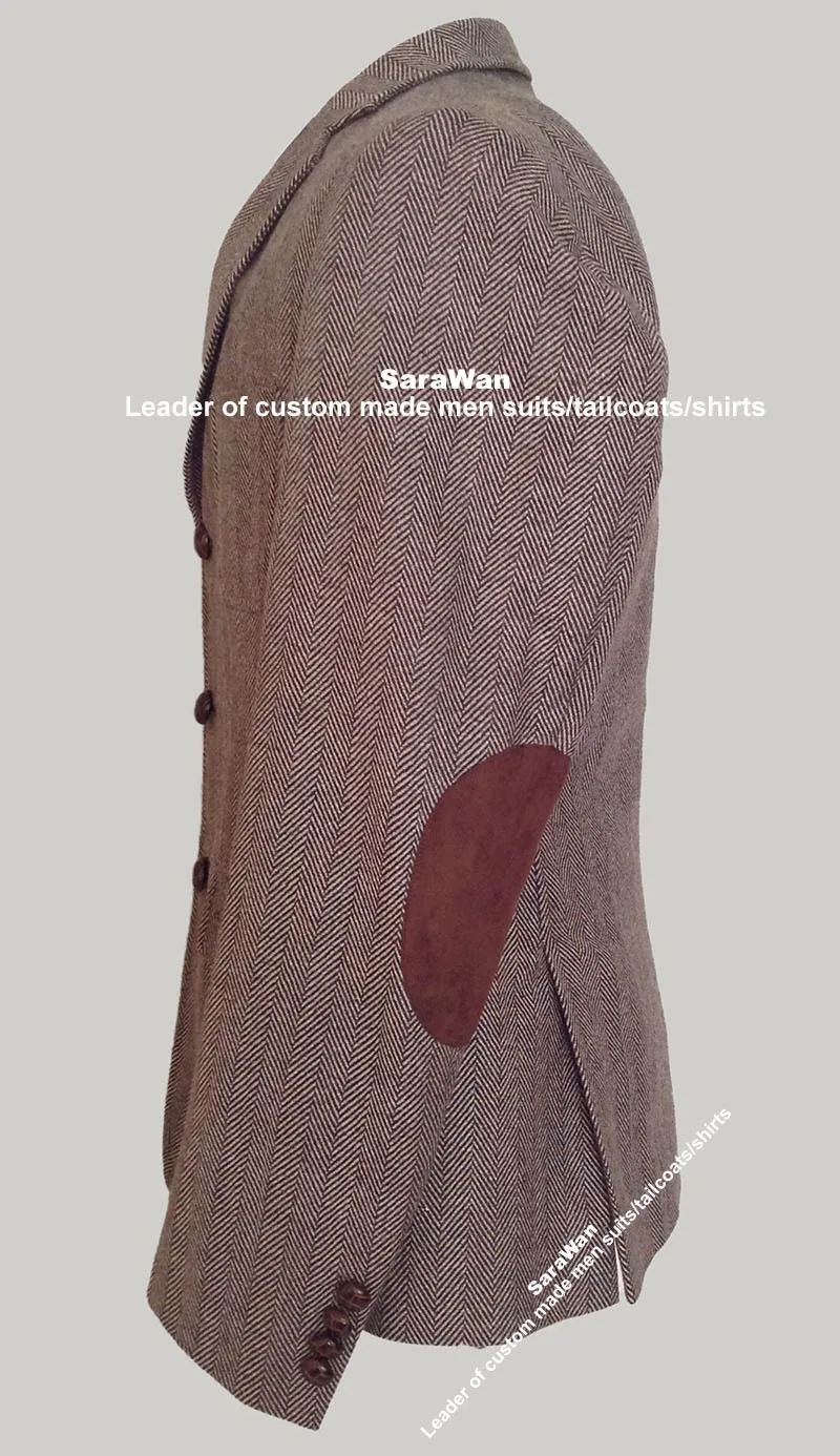 CUSTOM MADE Dark Brown Herringbone Tweed Sport Coat Blazer Jacket,BESPOKE Tweed Jacket 14102003