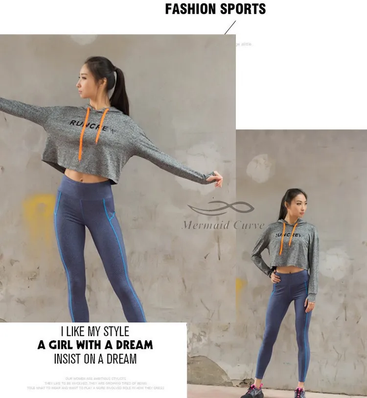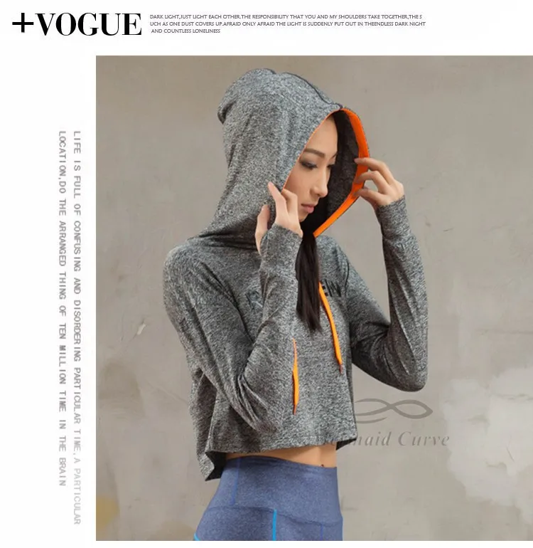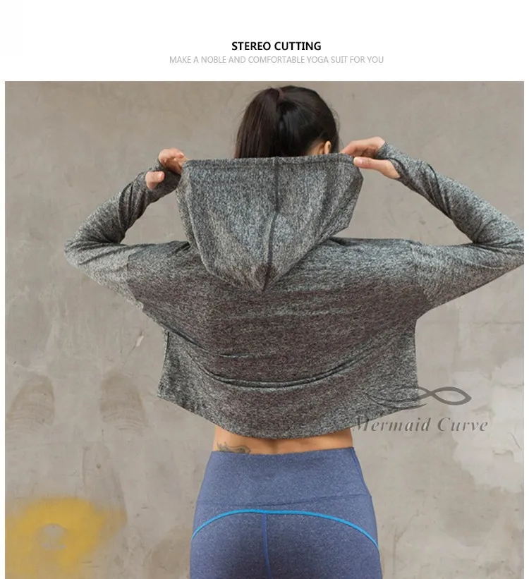 Mermaid Curve Cropped Sweatshirt Grey Long sleeve Sweater Slouchy Hoodies Cute Workout Sports Jerseys For Women Gym Clothes