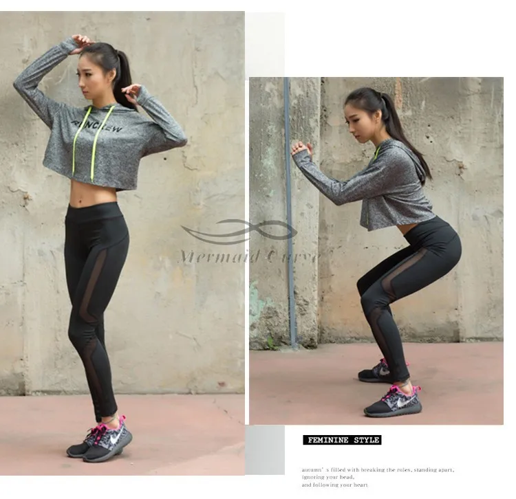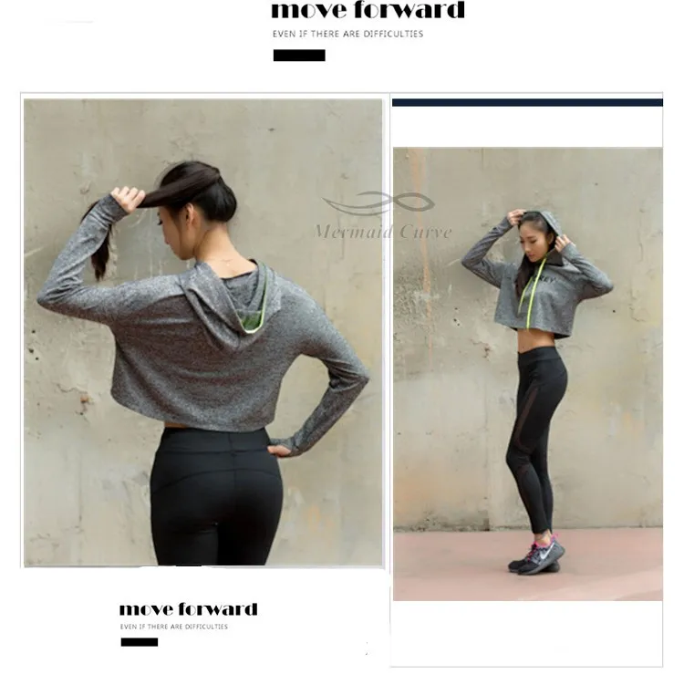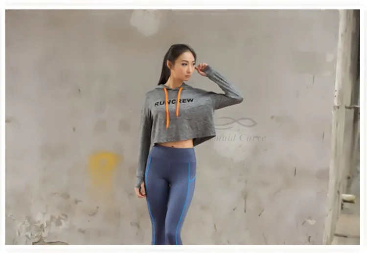 Mermaid Curve Cropped Sweatshirt Grey Long sleeve Sweater Slouchy Hoodies Cute Workout Sports Jerseys For Women Gym Clothes