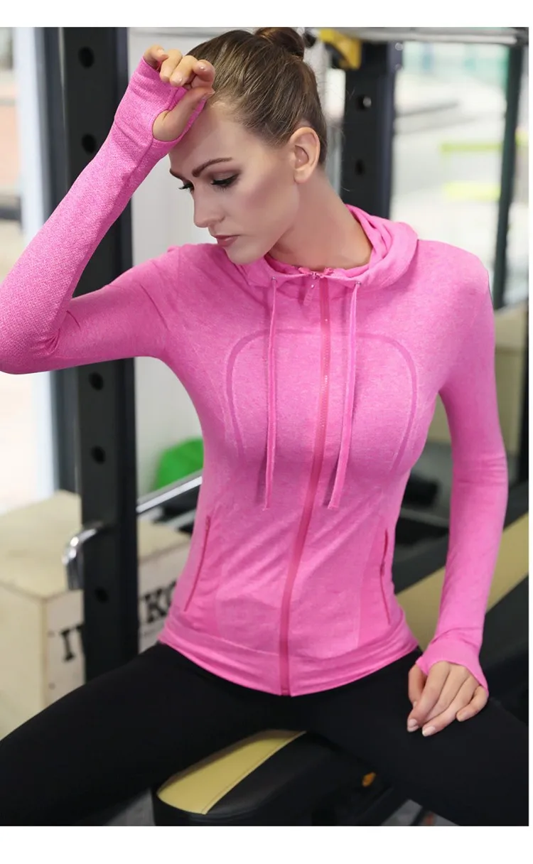 Mermaid Curve Quick-dry Long-sleeve Sweatshirt Women Sport Jackets Thin Hooded Running Fitness Zipper Jacket Outerwear Coats