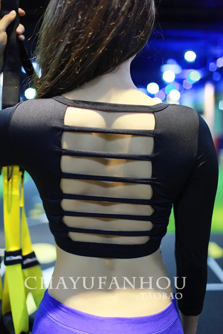 Mermaid Curve Women Gym Compression Tights Sport T Shirt Fitness Women Back Hollow Out Yoga Tops Outdoor running T-shirts