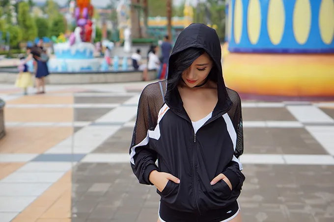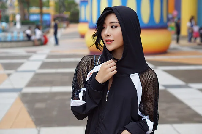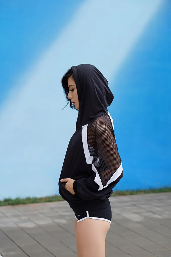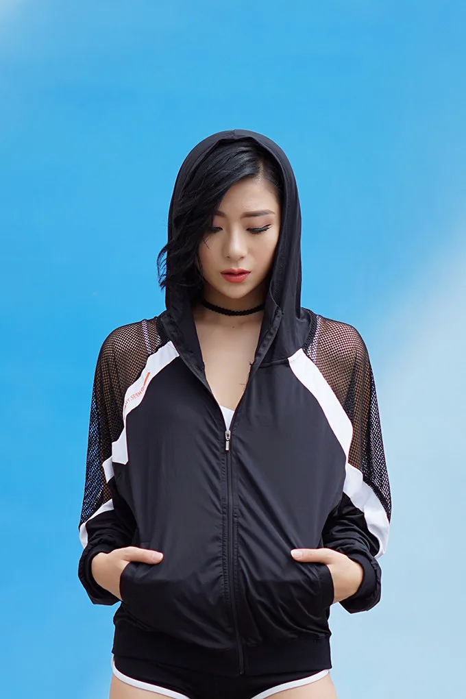 Mermaid Curve Women Hollow out hooded Running Loose Jackets Sports Outerwear Fitness Yoga Gym Jogging Zip Fastener Thin Coats