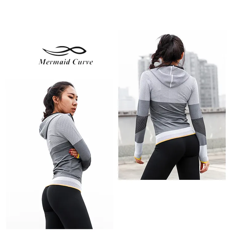 Mermaid Curve Women Hooded running jacket Long Sleeve Sweatshirt Ladies Yoga Sports Zipper Jacket Fitness Gym Shirts Women’s