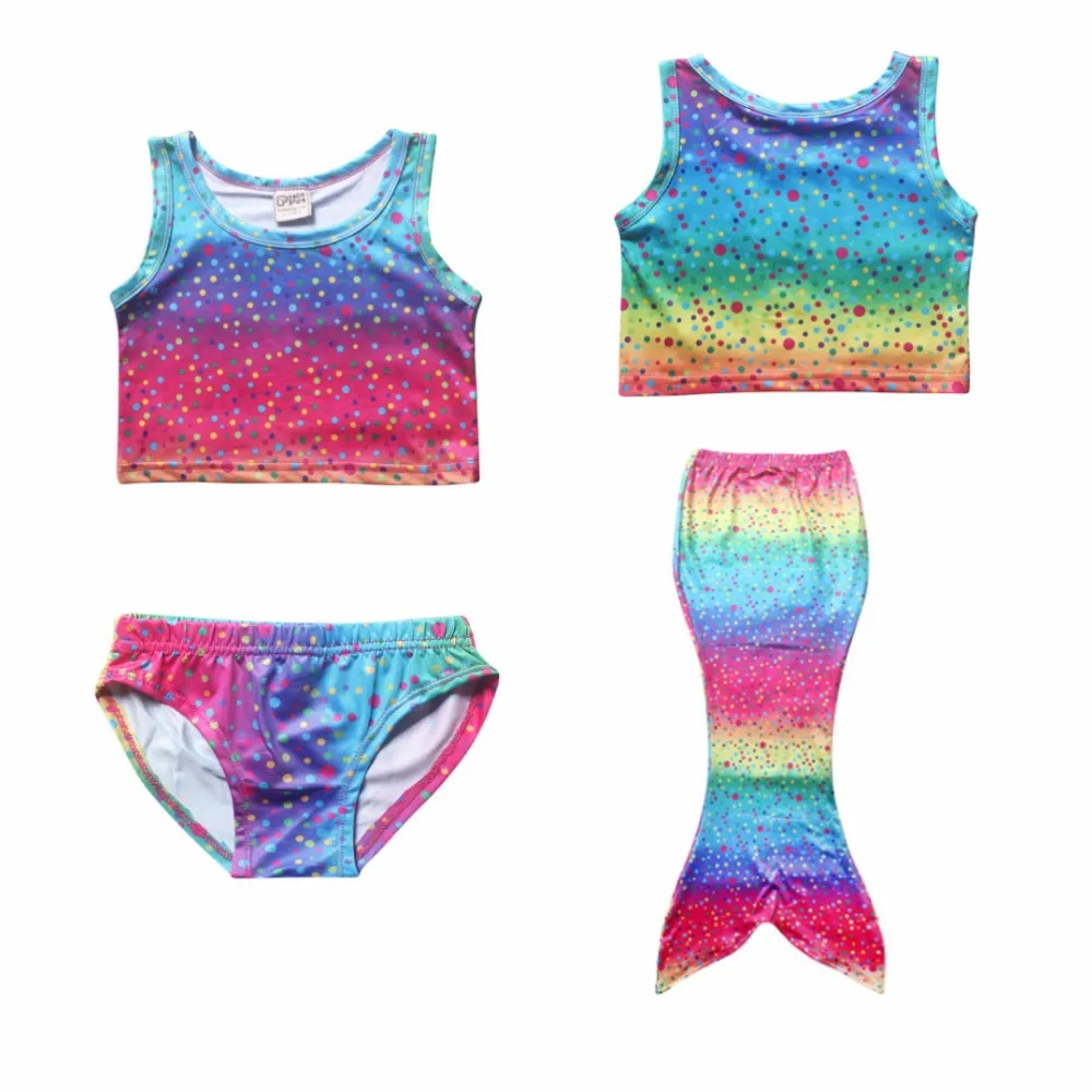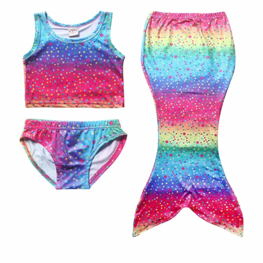 Mermaid Swimwear for Girl 3 Pieces Bikini Sets Polka Dot Kids Swimsuits for Girls Barthing Suits Children