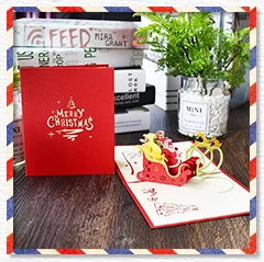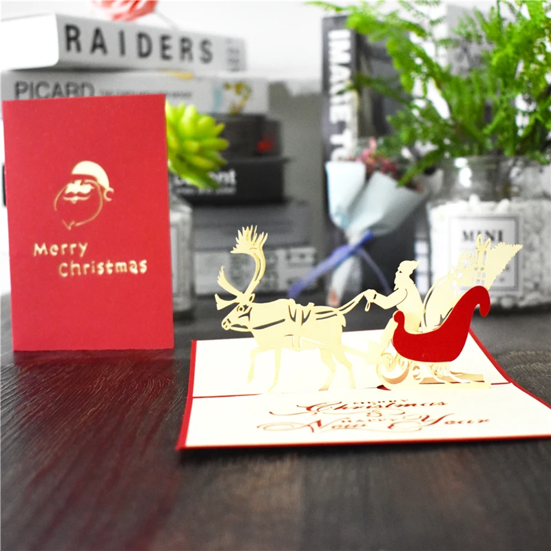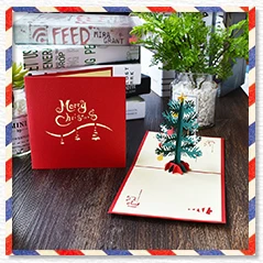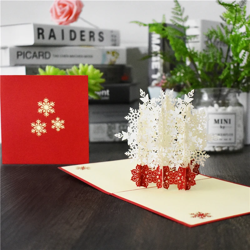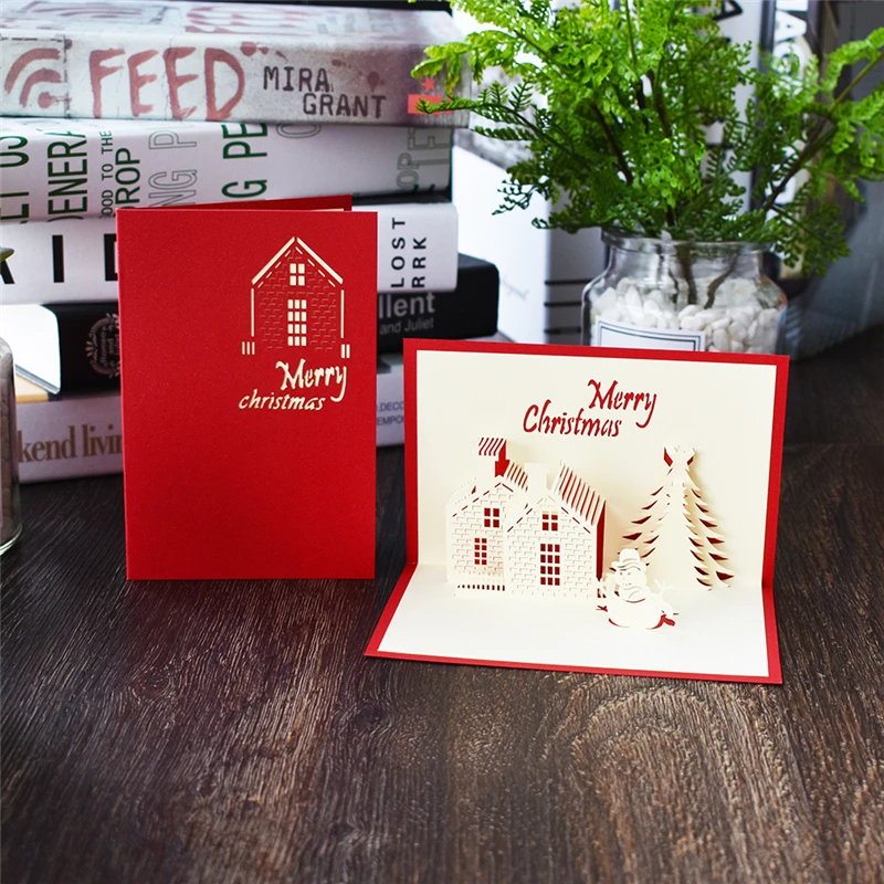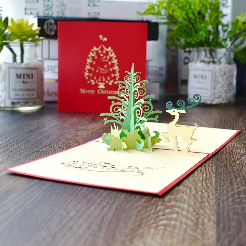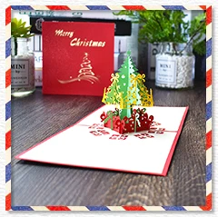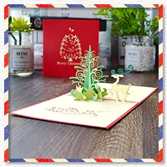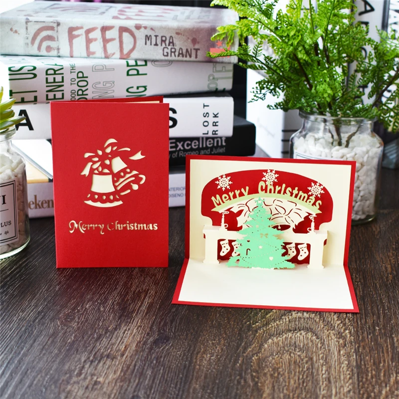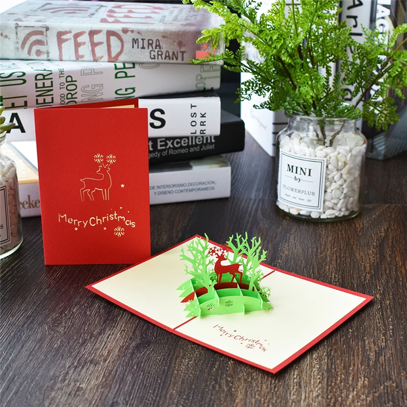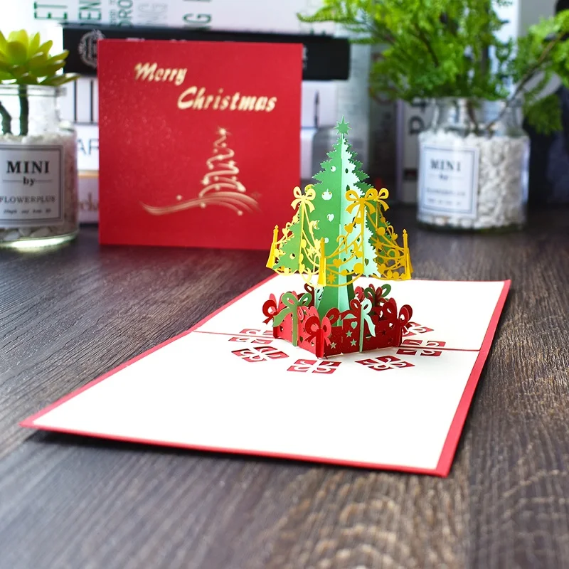 Merry Christmas Cards Christmas Tree Winter Gift Pop UP Cards Christmas Decoration Stickers Laser Cut New Year Greeting Cards