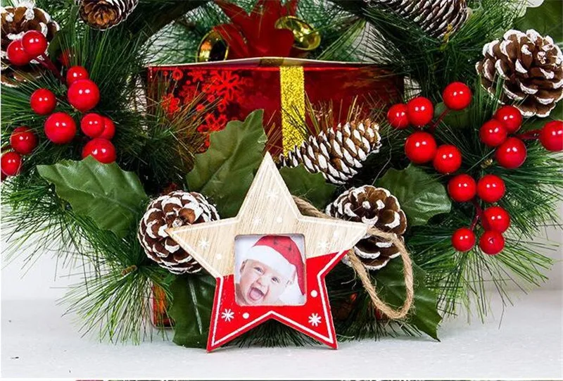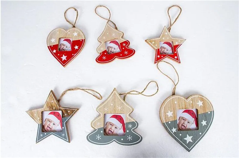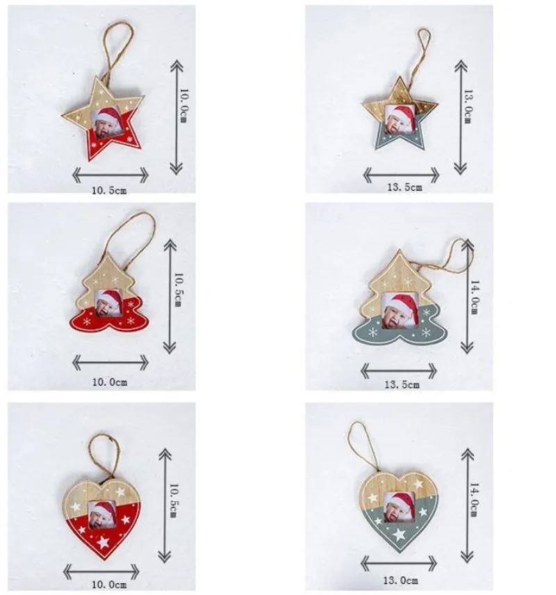 1Pc Merry Christmas Decorations for home Wooden photo frame Ornament Christmas Tree Decoration Hanging Pendant Enfeites Natal