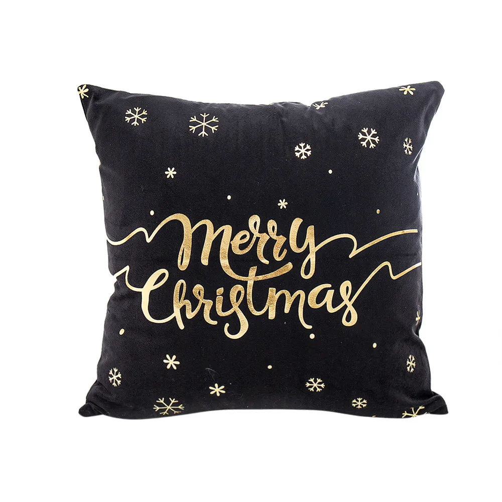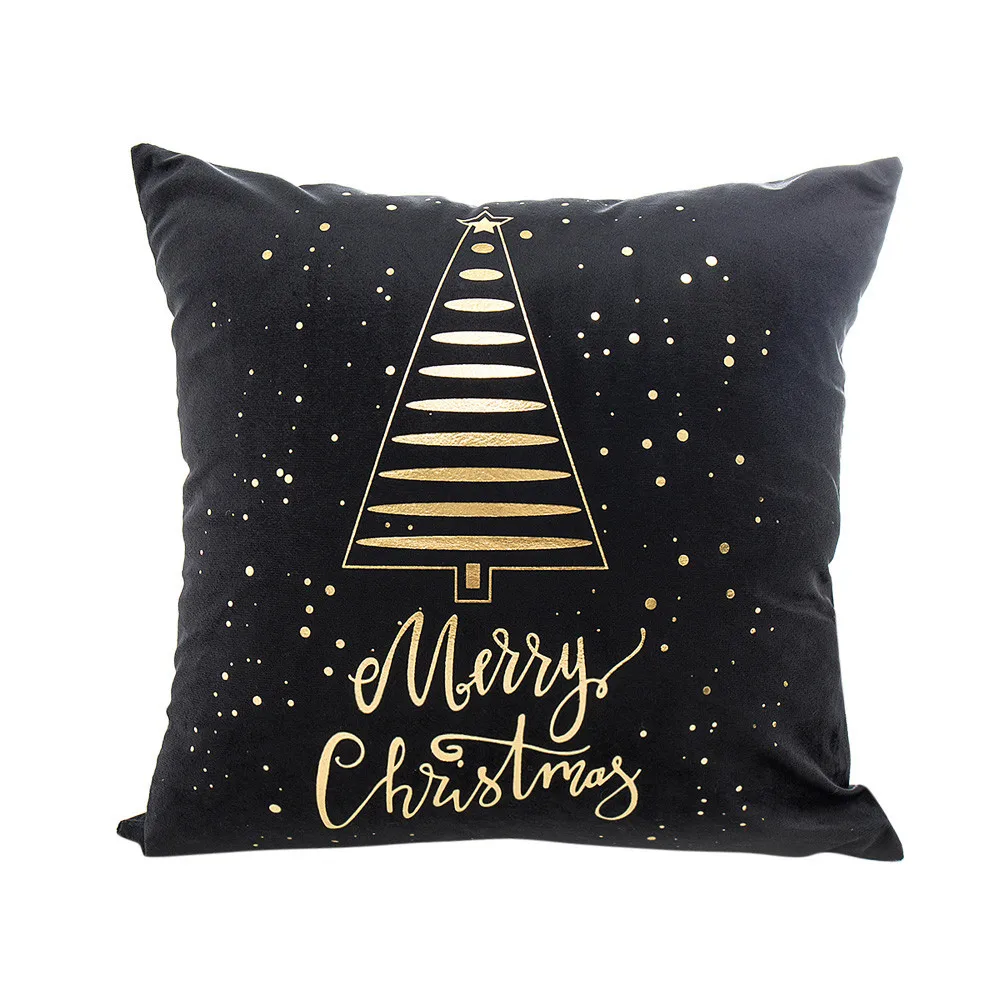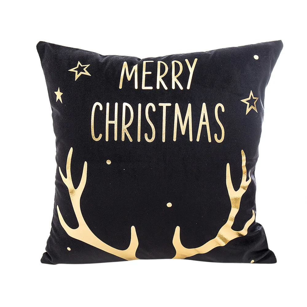 Merry Christmas Gold Foil Printing Pillow Case Sofa Waist Throw Cushion Cover