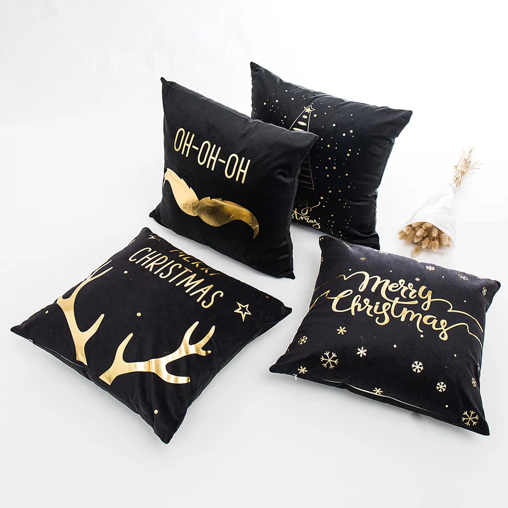 Merry Christmas Pillow Case Gold Foil Printing Pillow Cover Sofa Waist Throw Cushion Cover Coffee Shop Decorative Pillow Covers