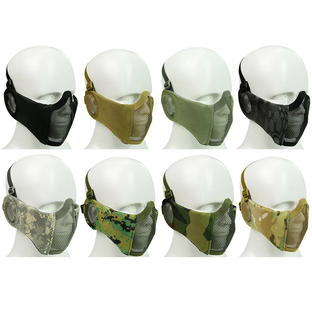 Mesh Half Face Tactical Paintball Mask Airsoft Accessories Hunting Ear Protective
