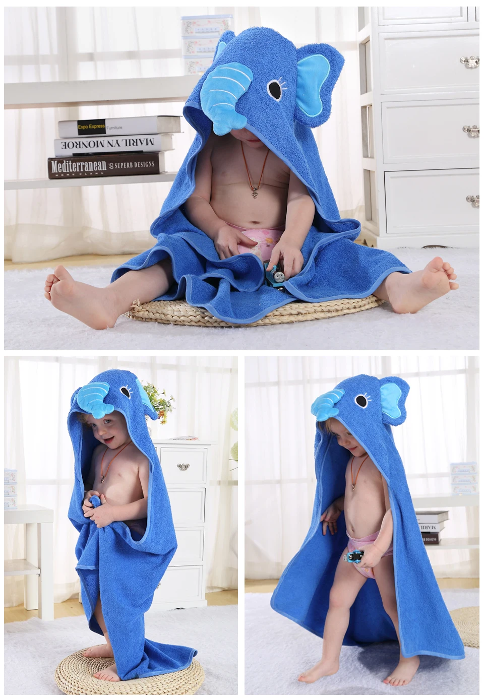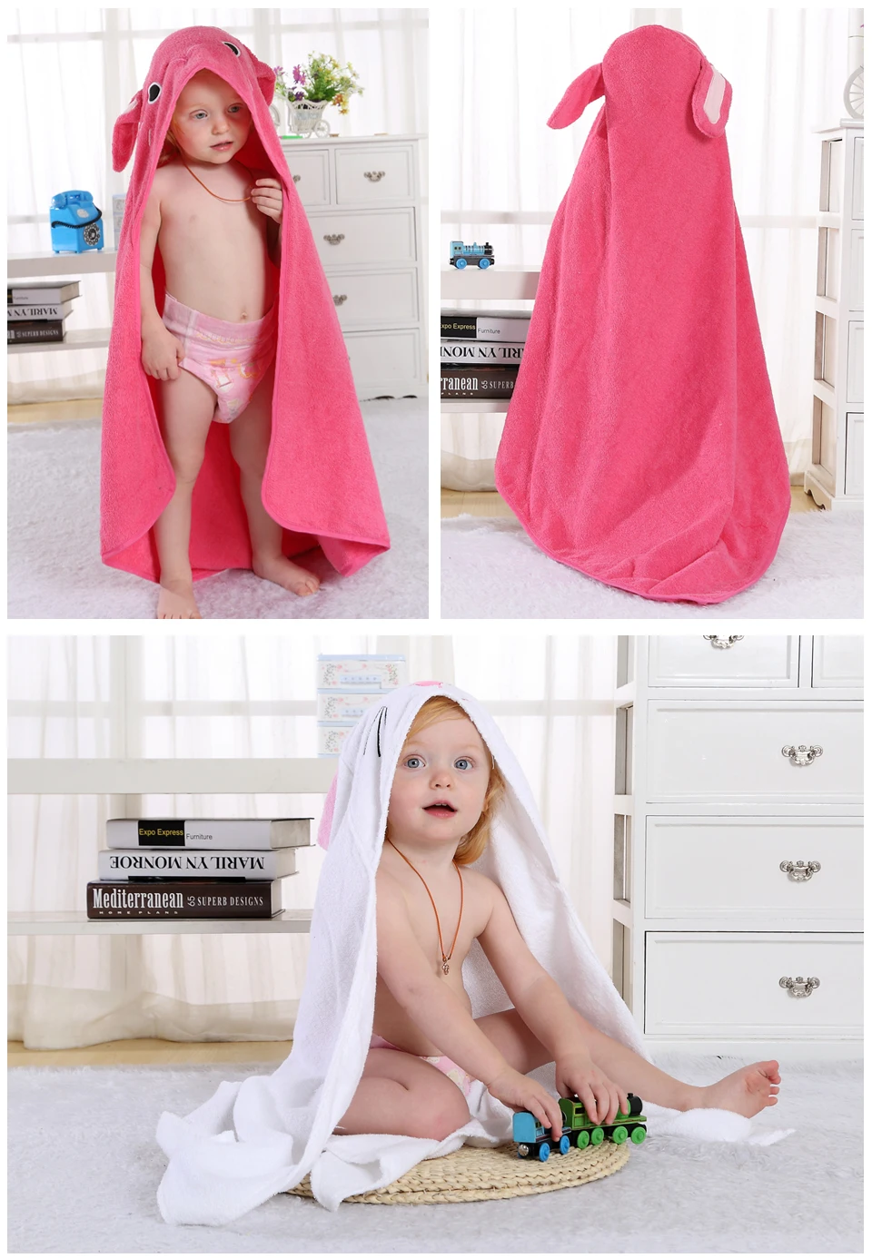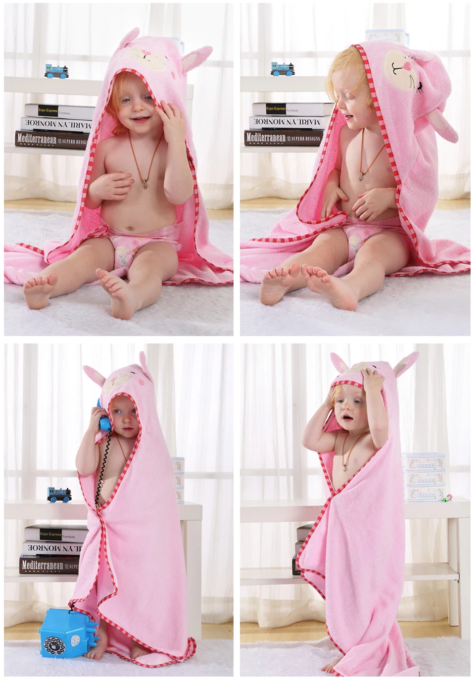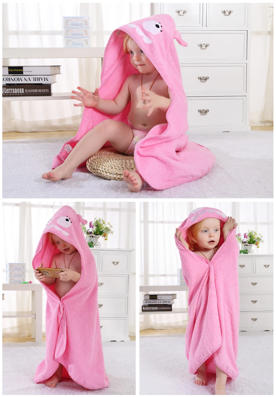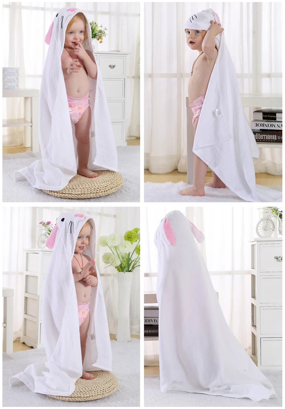 MICHLEY 100% Cotton Soft Cloak Hooded Cute Animal Baby Bathrobe Boys Girls Toddler Bath Towel Children Cartoon Shawl 90*90cm QWA
