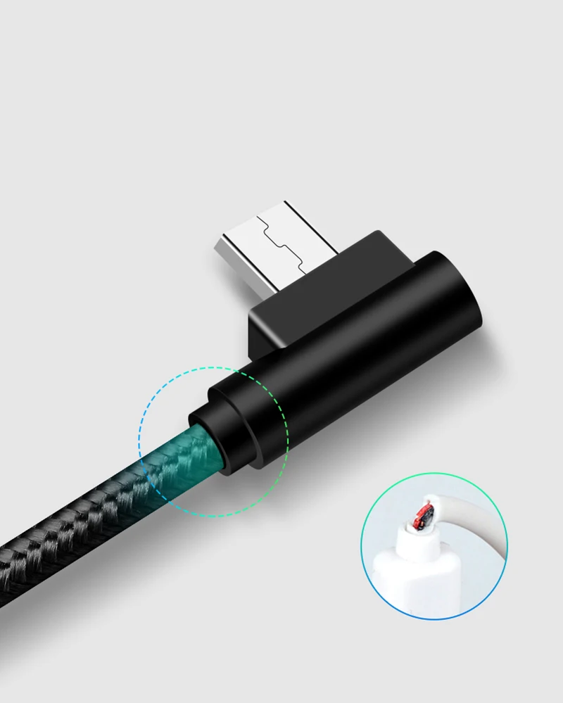 Micro USB Cable 2A Fast Charger USB Cord Suntaiho 90 degree elbow Nylon Braided Data Cable for Samsung/Sony/Xiaomi Android Phone