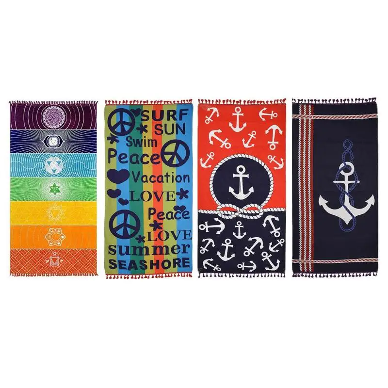 It can be used as beach mat, beach scarf, towel, camping, damp proof mat, tablecloth and tapestry.