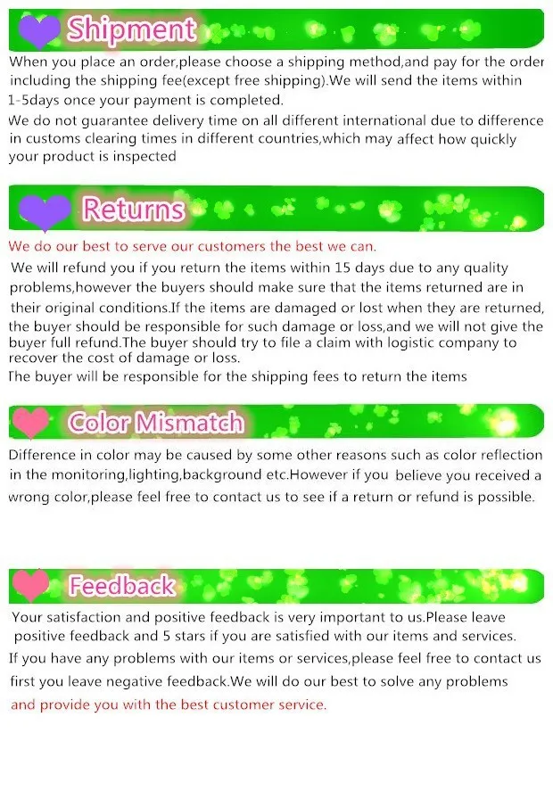 We are not responsible for any custom fees once the items have shipped. By purchasing our products, you consent that one or more packages may be shipped to you and may get custom fees when they arrive in your country.