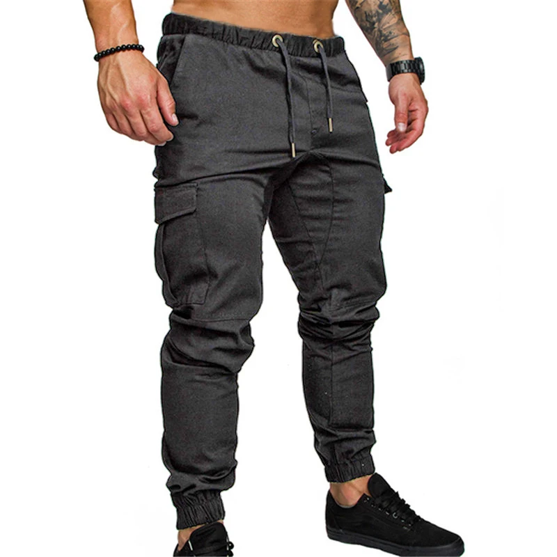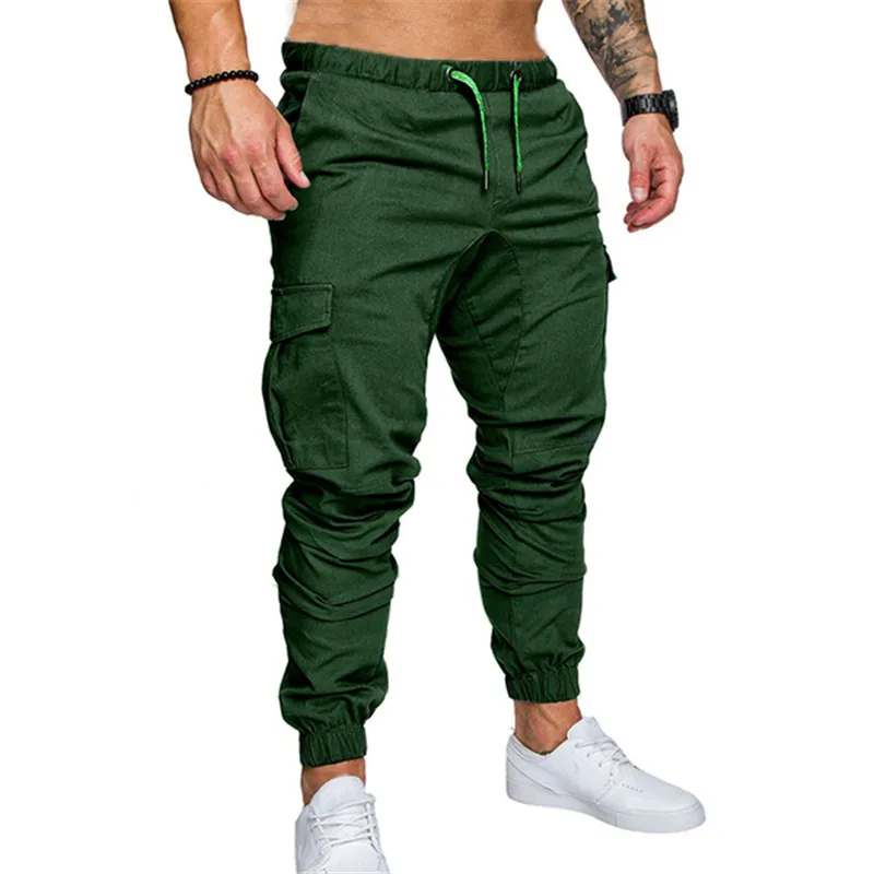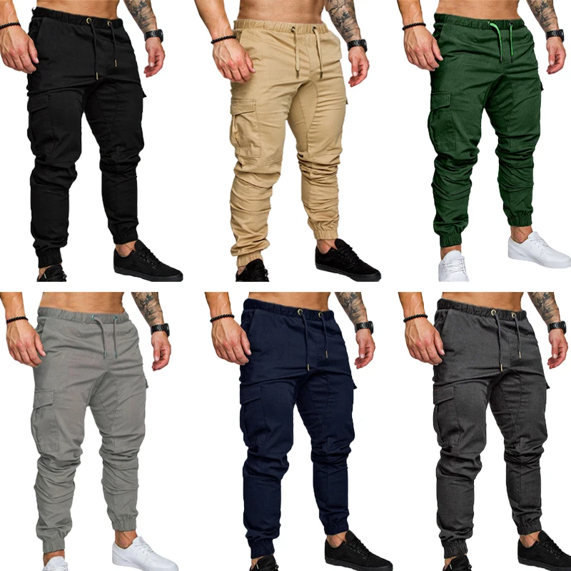 Product Description:Mens Multi-pocket Cargo Pants Elastic Waist Slim Fit Solid Color Casual Trousers