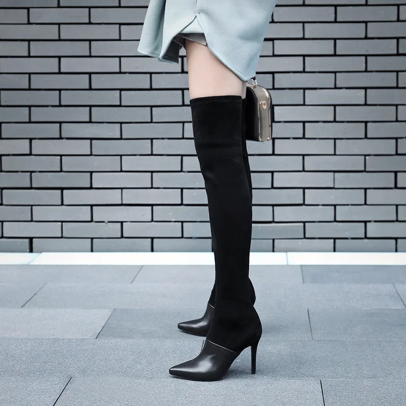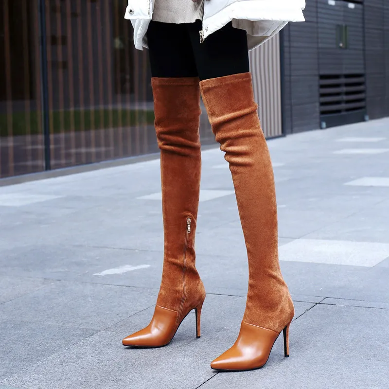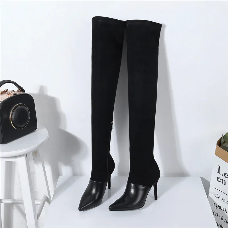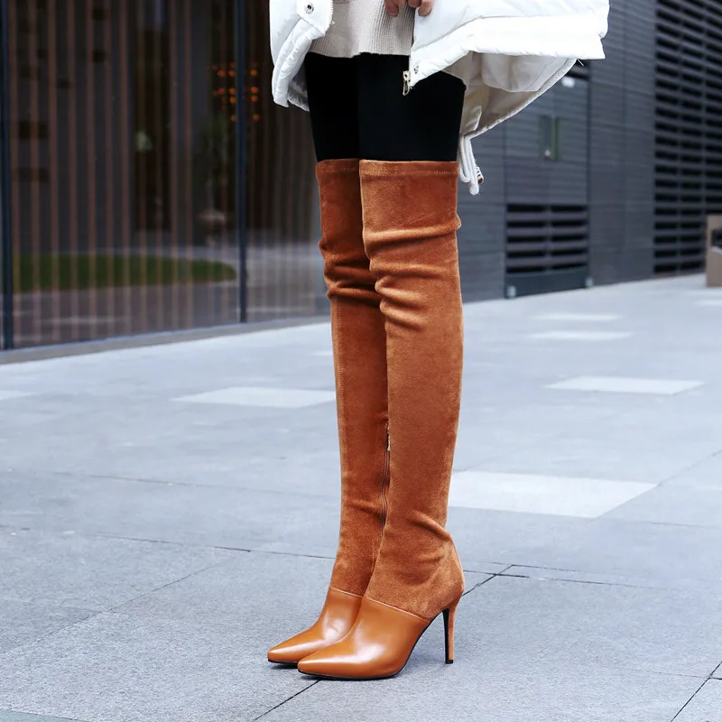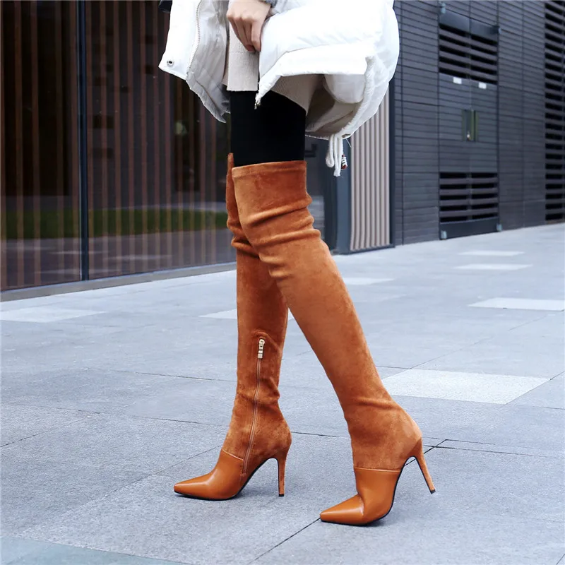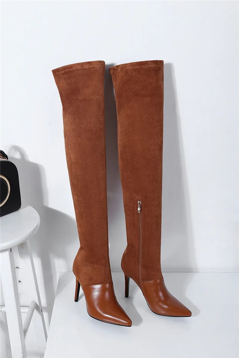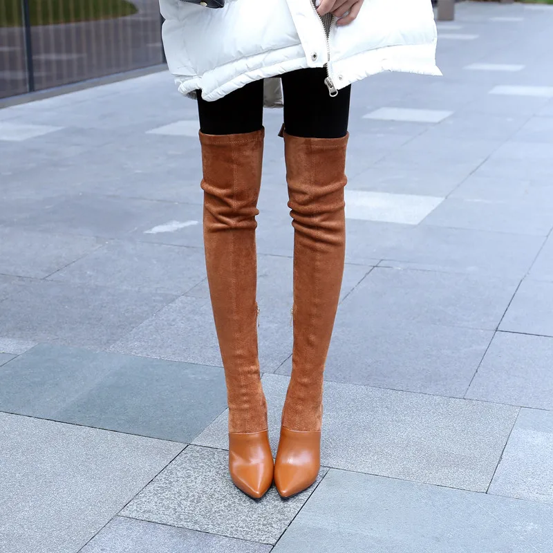 MINGDILIN Winter Women’s Over The Knee Boots Woman Thigh High Boots Black Brown Pointed Toe Fashion Sexy Knee High Boots 2018