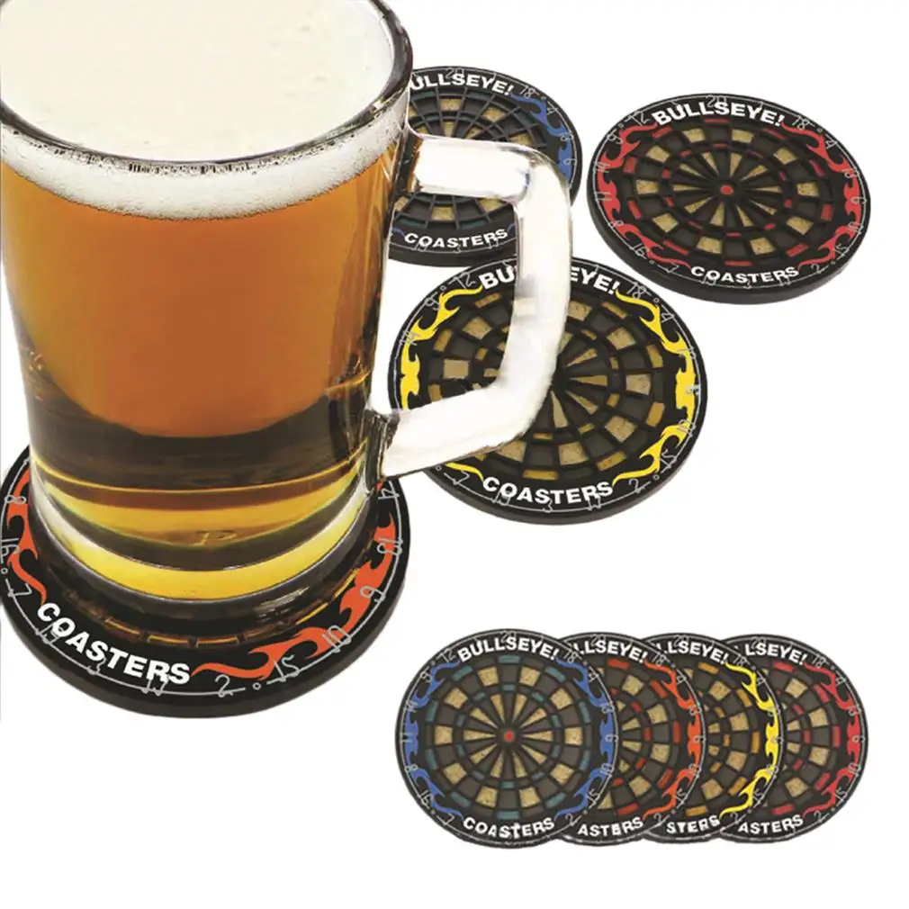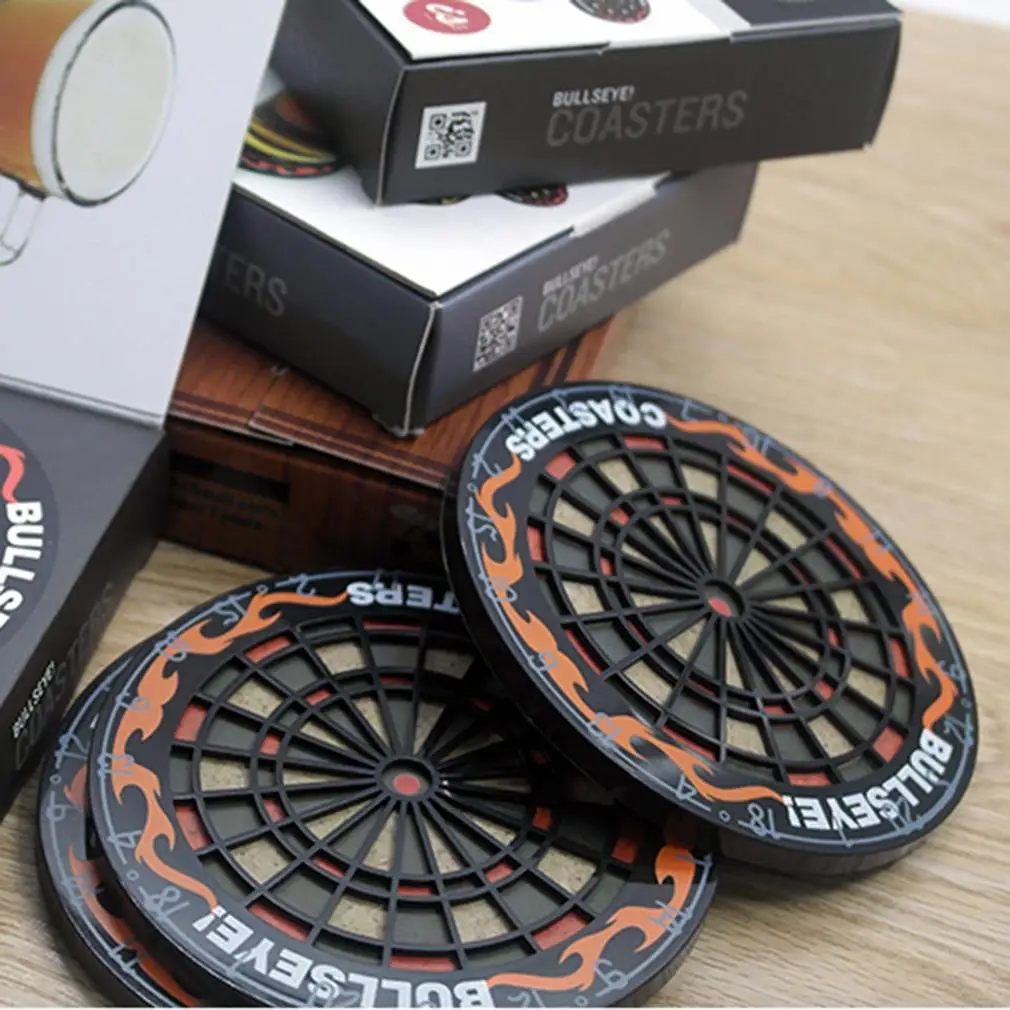 The dart-board drink coasters will help your glass hit the spot every time. Keep your drinks on target and your tabletops free of moisture marks with Bullseye Coasters.