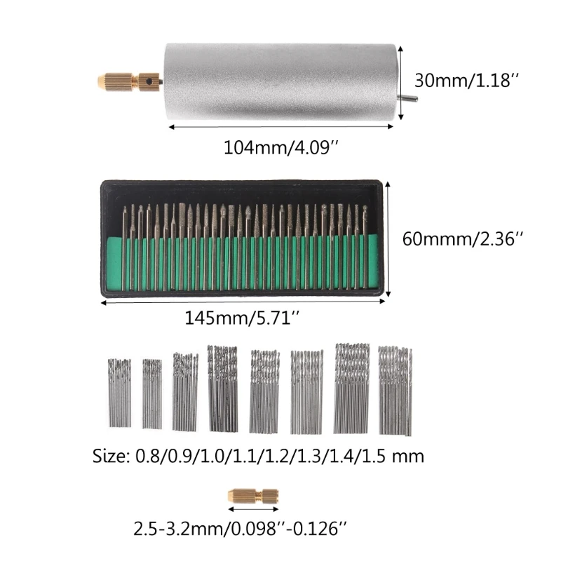 Hand drill size:104x30mm/4.09×1.18in(HxD)