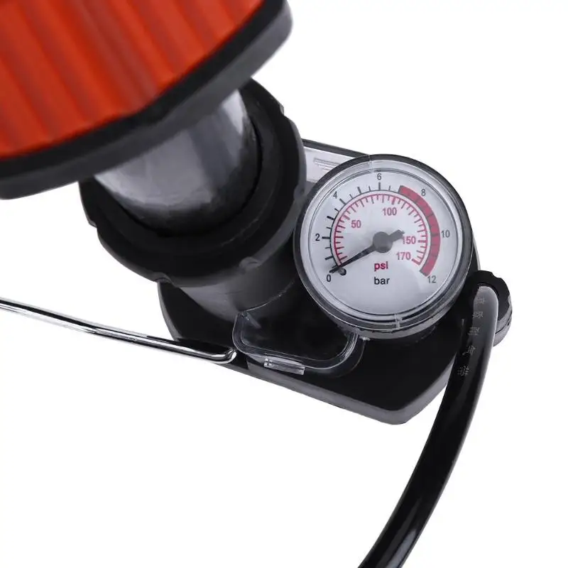 Lightweight and portable, easy inflating. Pedal pump, easy to operation and save energy. To deal with accident occasions that your tire has no air.