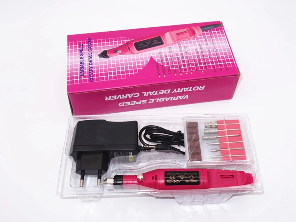 6 optional standard metal bits/filing heads and 6 sanding bands.