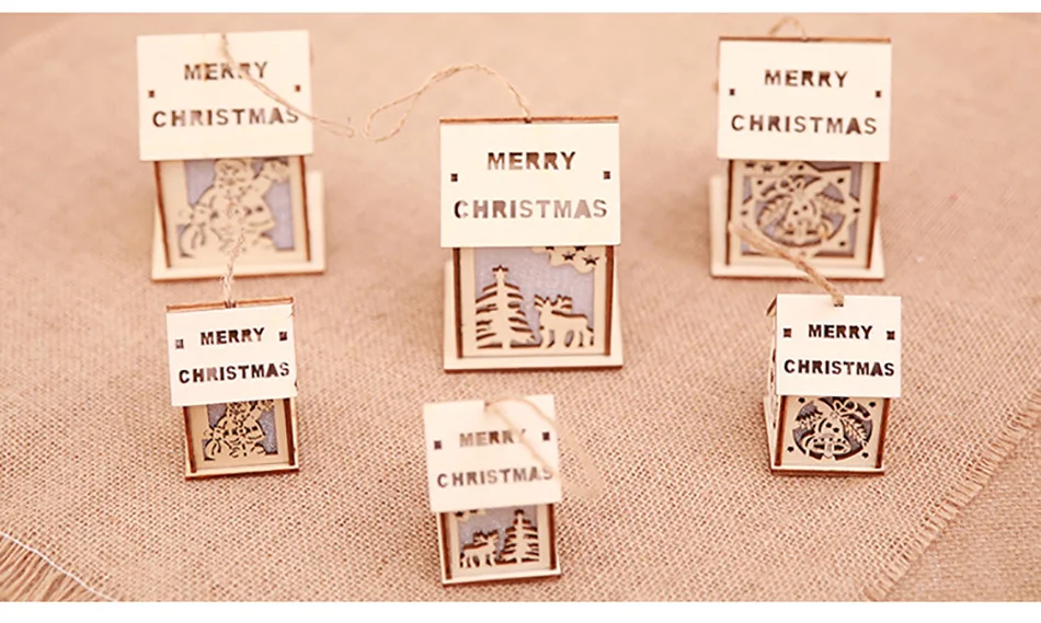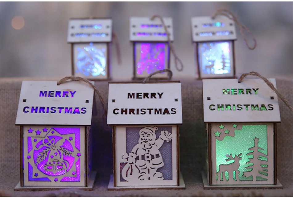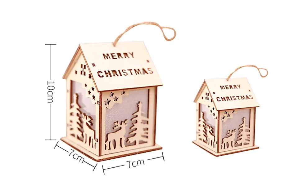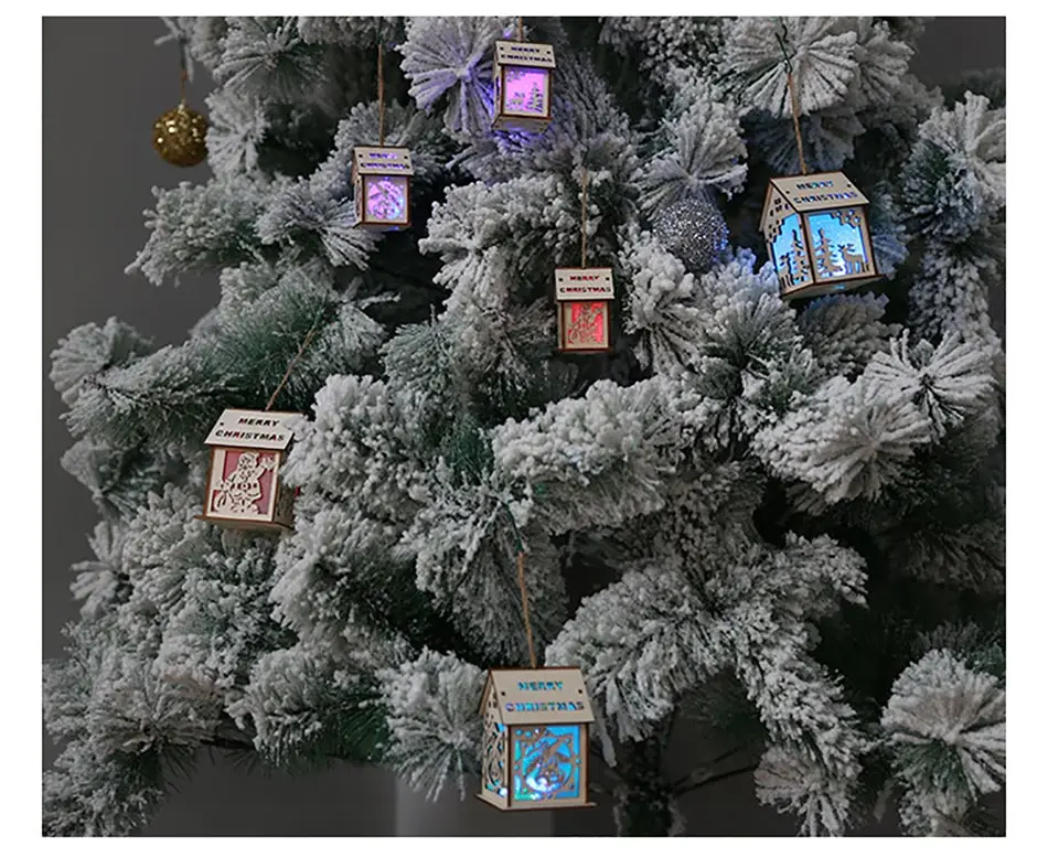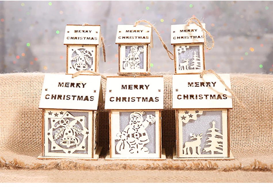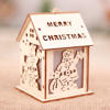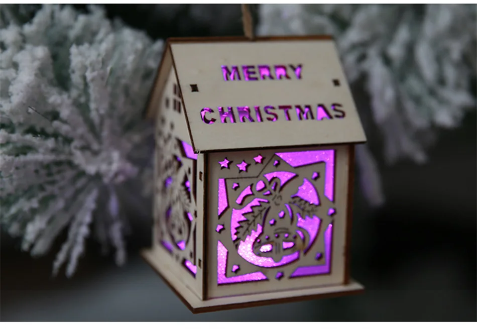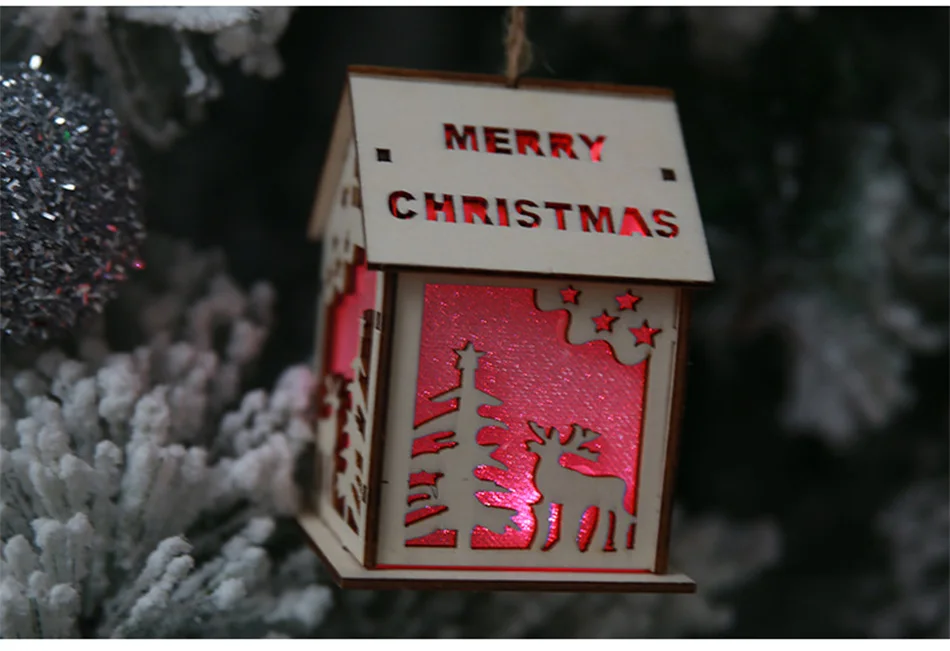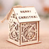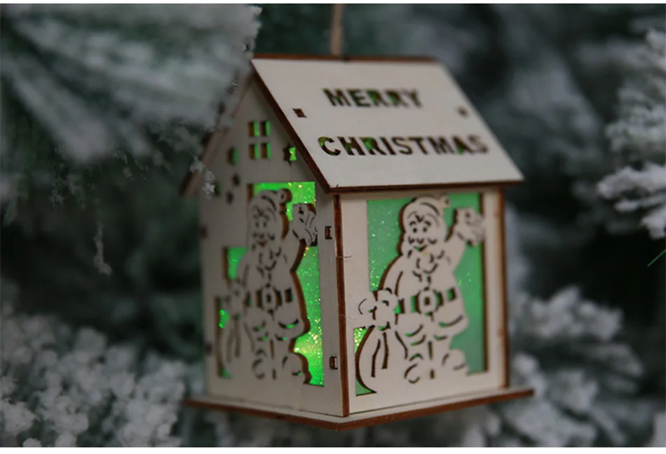 Mini Glow Wooden Christmas House with Flashing Lamp Christmas Tree Hanging Ornaments Xmas Party Decoration Kids Gift AF072