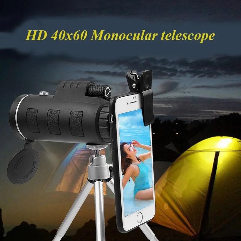 Mini HD 40X60 Monocular Day and Night Vision Telescope Phone with Tripod Phone Clip Handheld Optical Monocular Outdoor Monocular