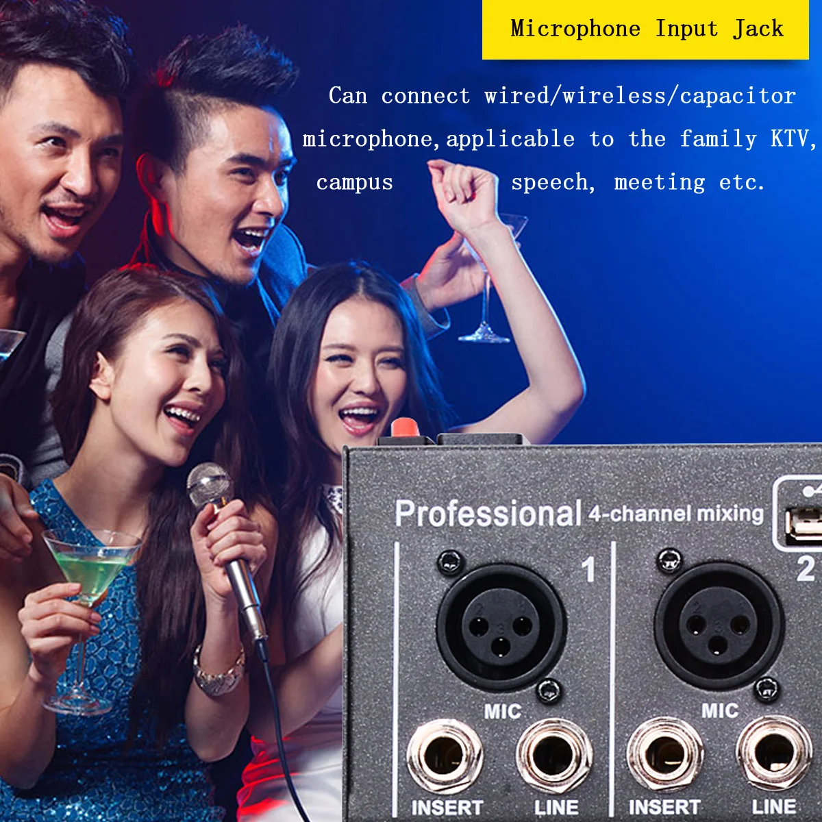 Mini Portable Audio Mixer with USB DJ Sound Mixing Console MP3 Jack 4 Channel Karaoke 48V Amplifier For Karaoke KTV Match Party