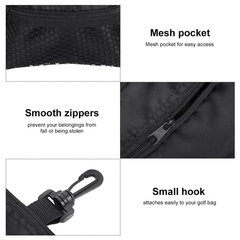Mini Portable Golf Ball Bag Multi-Pocket Black Zipper Handbag Bag Golf Accessories