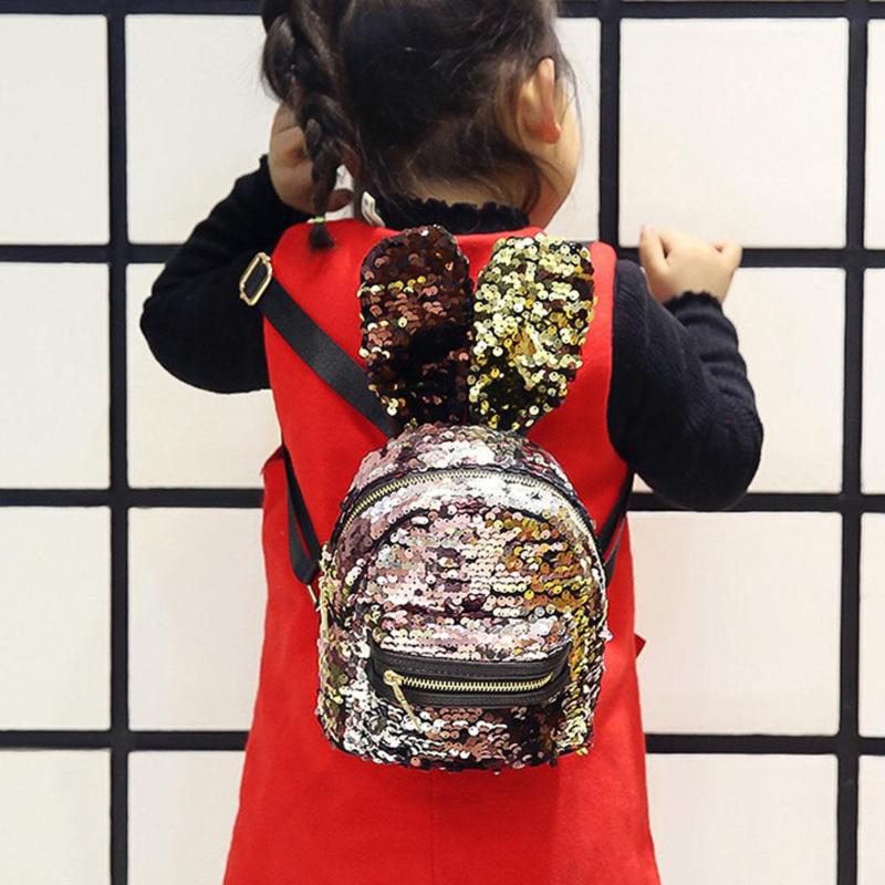 Mini Shining Sequins Backpack Rabbit Ear Shoulder Bags for Women Baby Girls