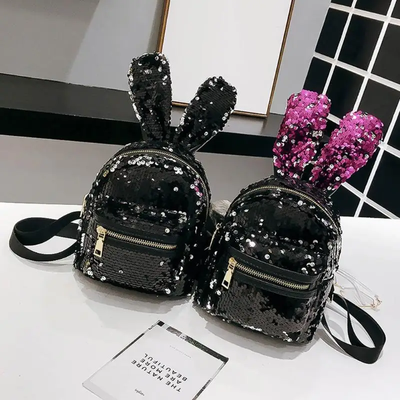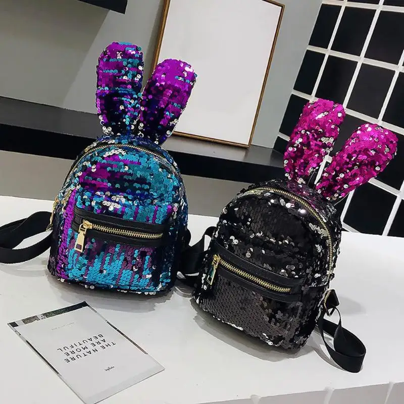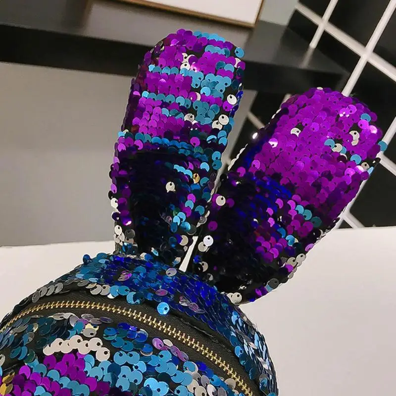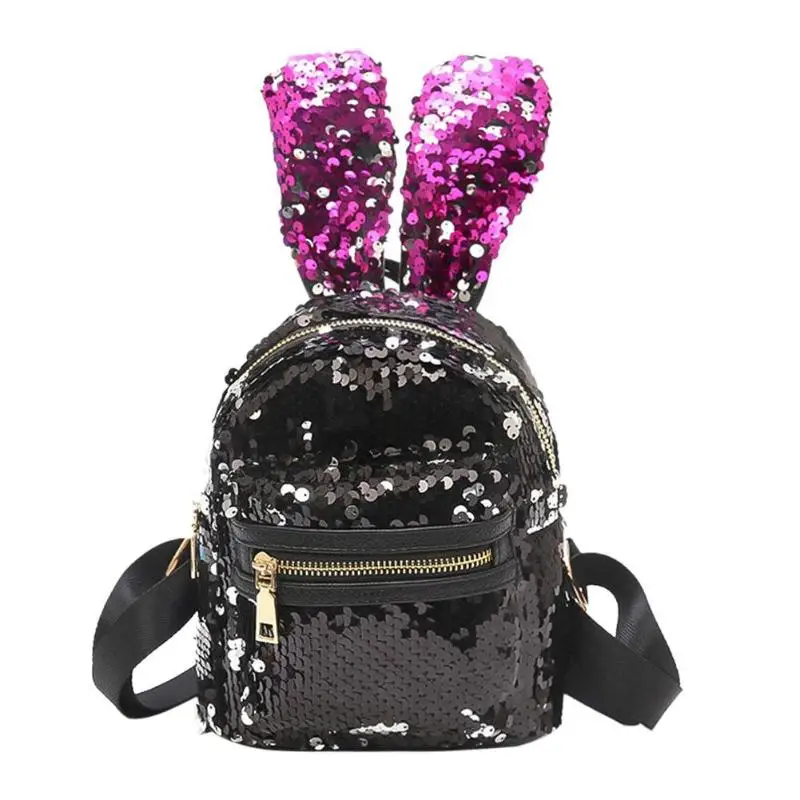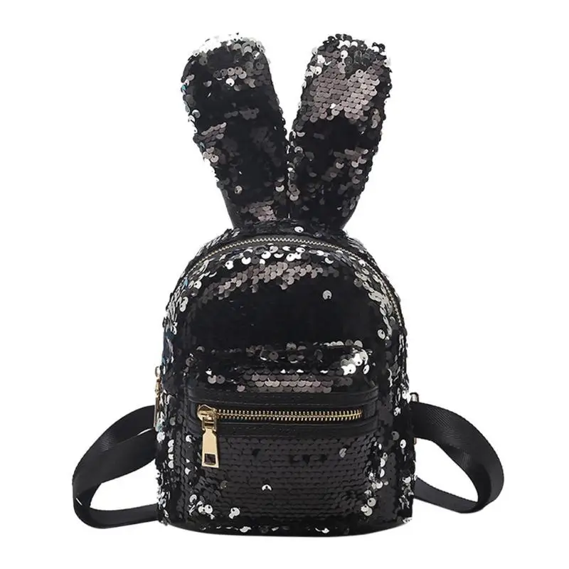 Mini Shining Sequins Backpack Rabbit Ear Shoulder Bags for Women Baby Girls