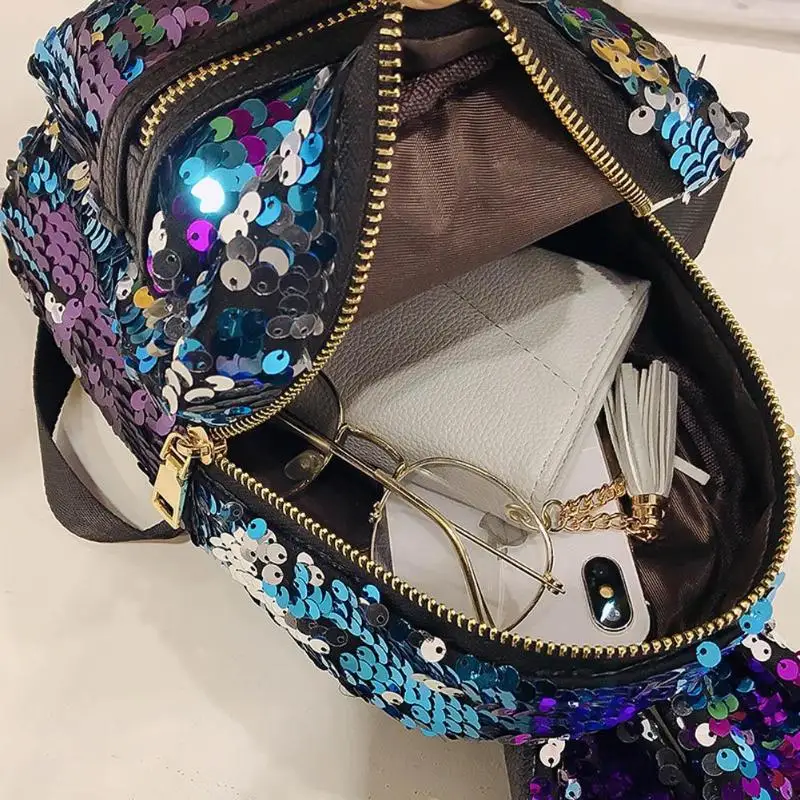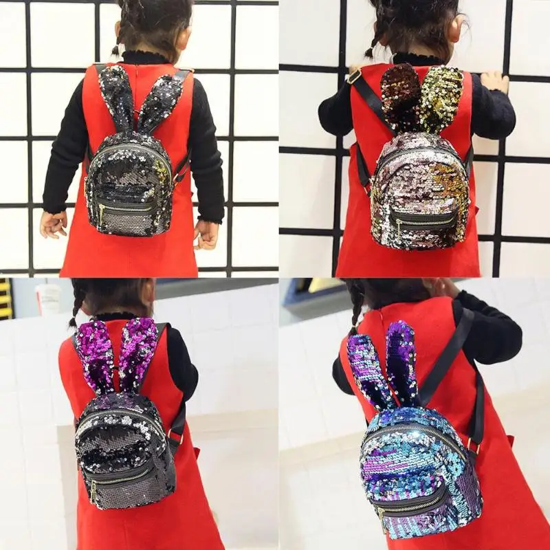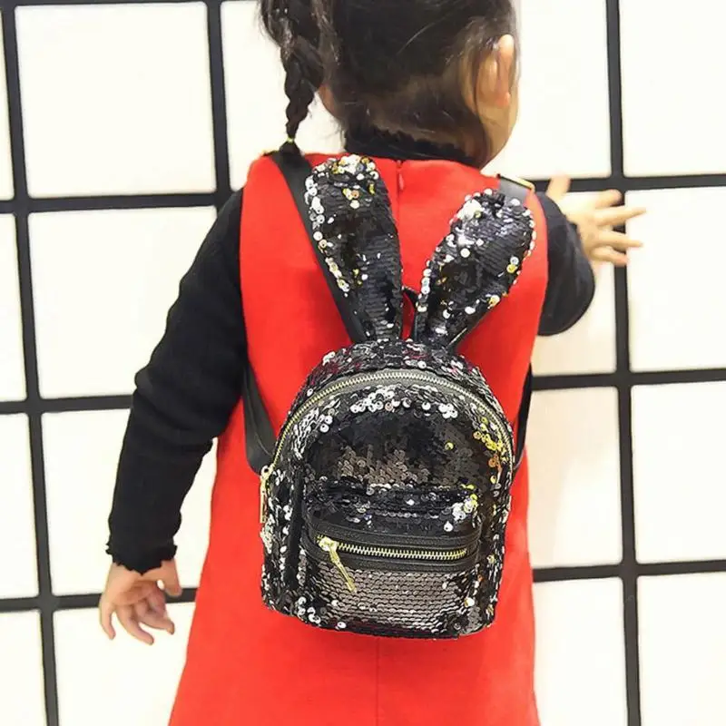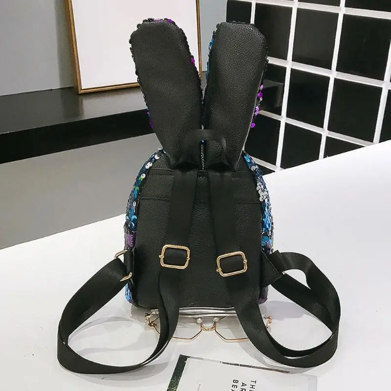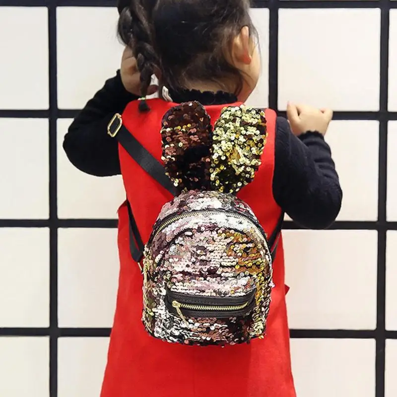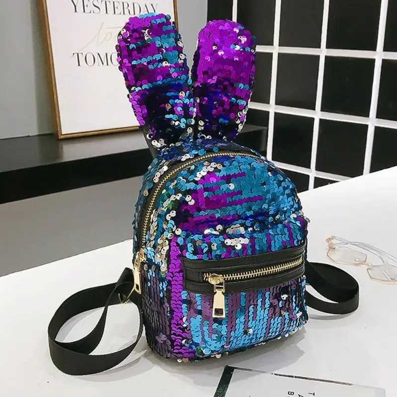 Mini Shining Sequins Backpack Rabbit Ear Shoulder Bags for Women Baby Girls