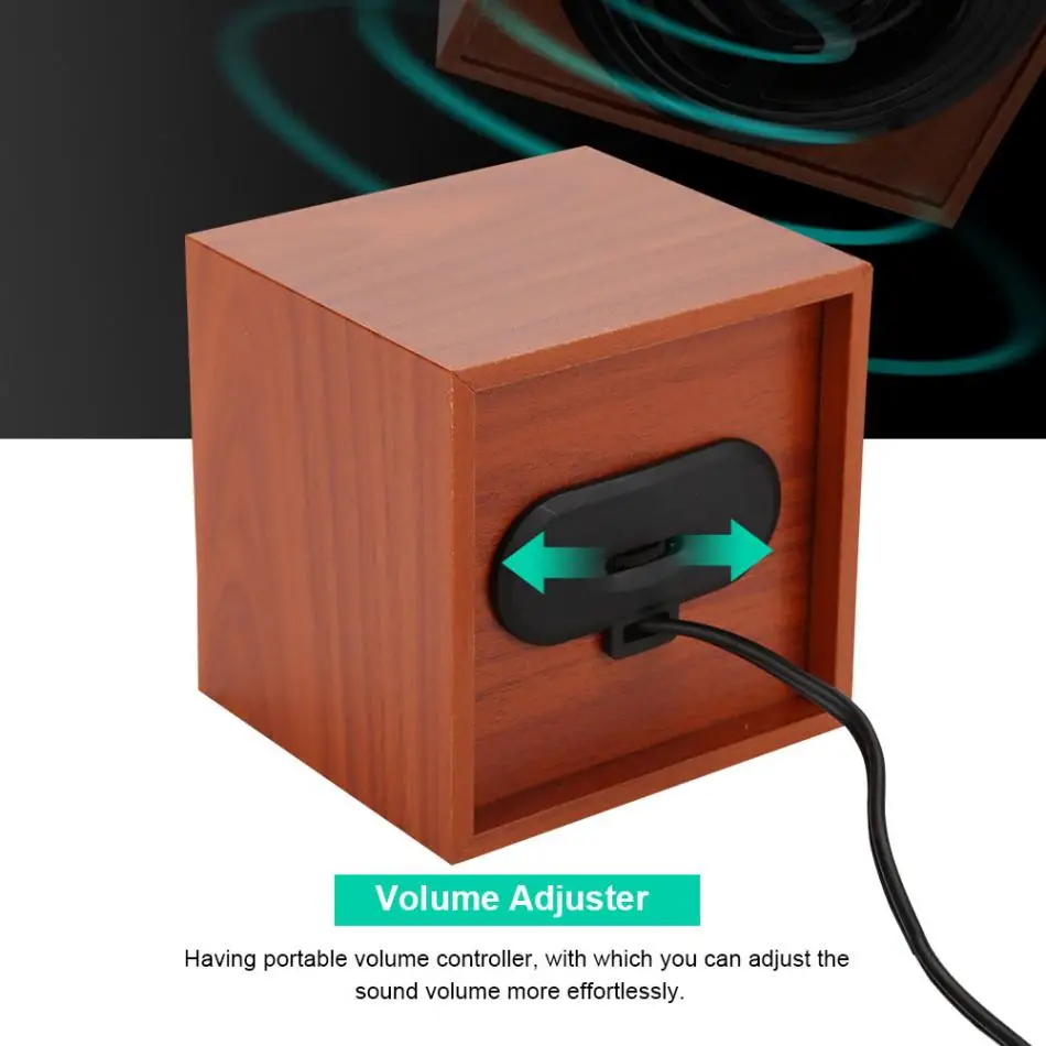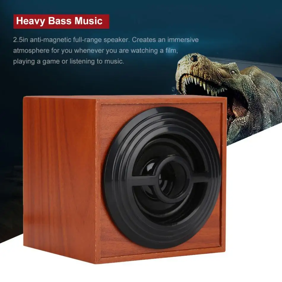 The shell material of this speaker is made of high quality wood, which makes the appearance of the speaker very classic and stylish, thus it can embellish your desktop. As a very practical item, it can produce steady and undistorted stereo bass sound, creating an immersive atmosphere for you whenever you are watching a film, playing a game or listening to music.