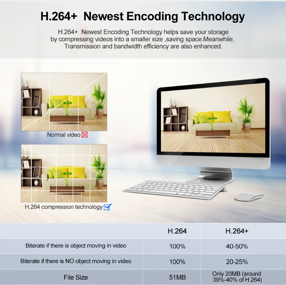 2.H.264+ High Profile compression,low bitrate high quality imge;