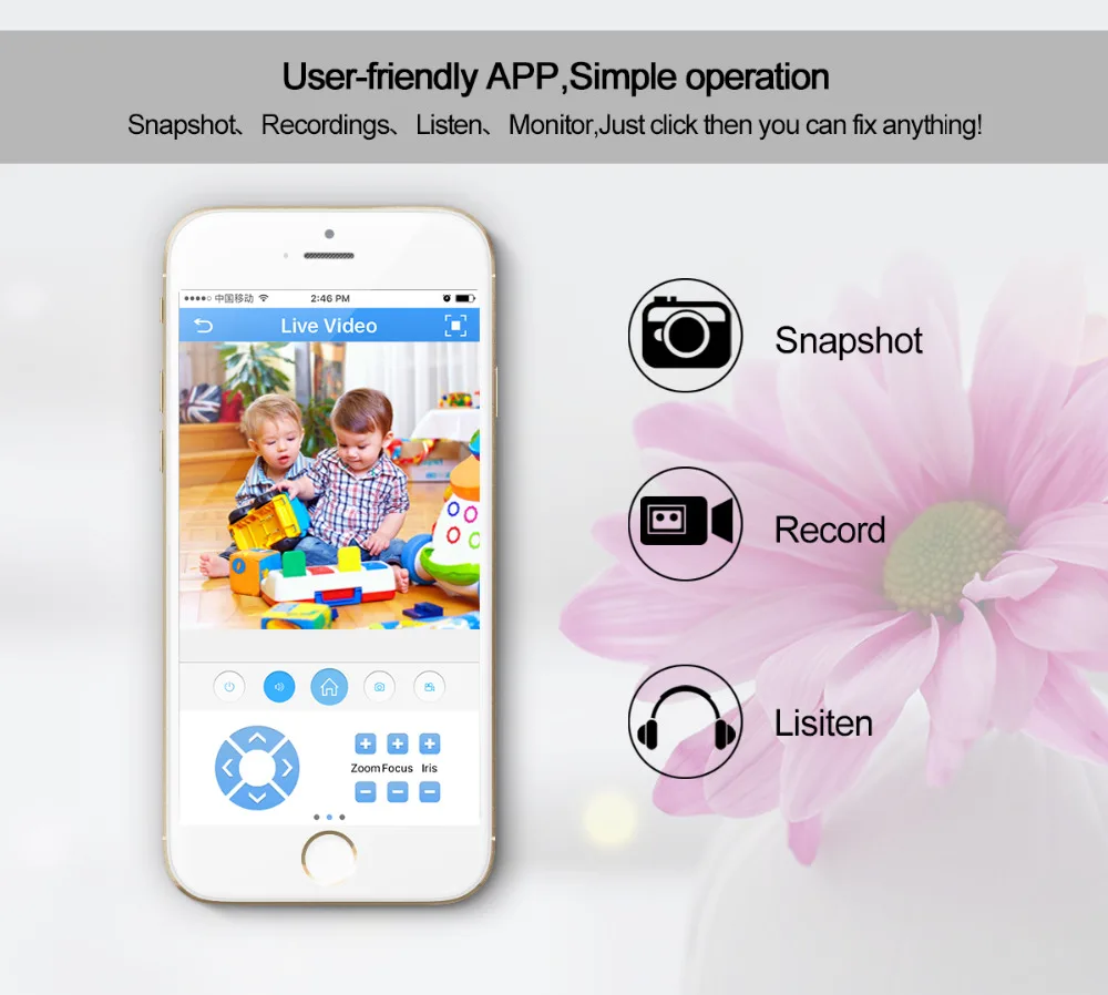 Wifi camera: Support remote viewing on mobile devices. for iPhone/Android supported.