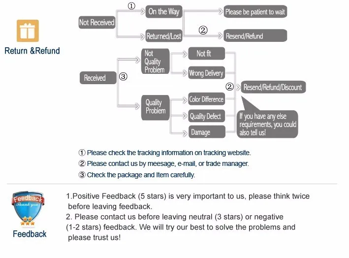 1.Your feedback is very important to our Business’s development, So please leave Feedback 5 Stars if you are satisfied with our products, if you can show your photos then it is more perfect, Thank you very much.