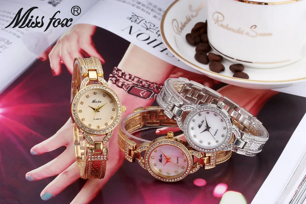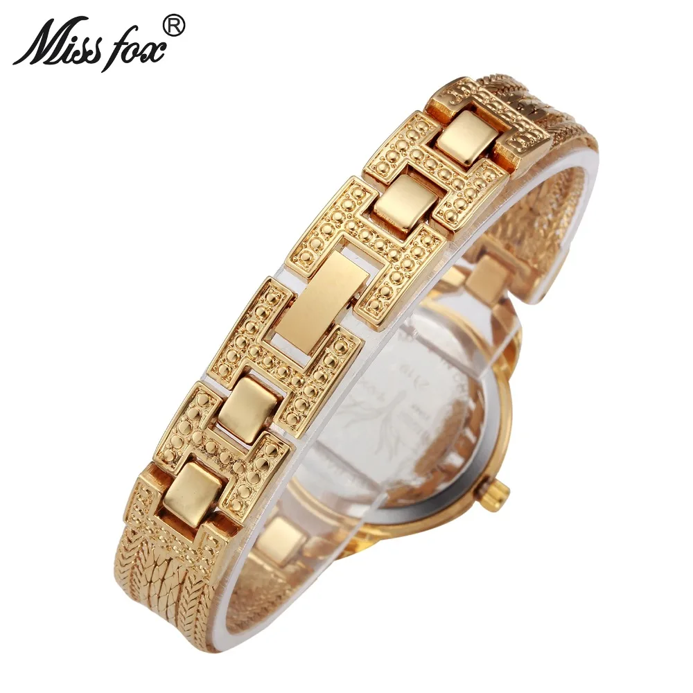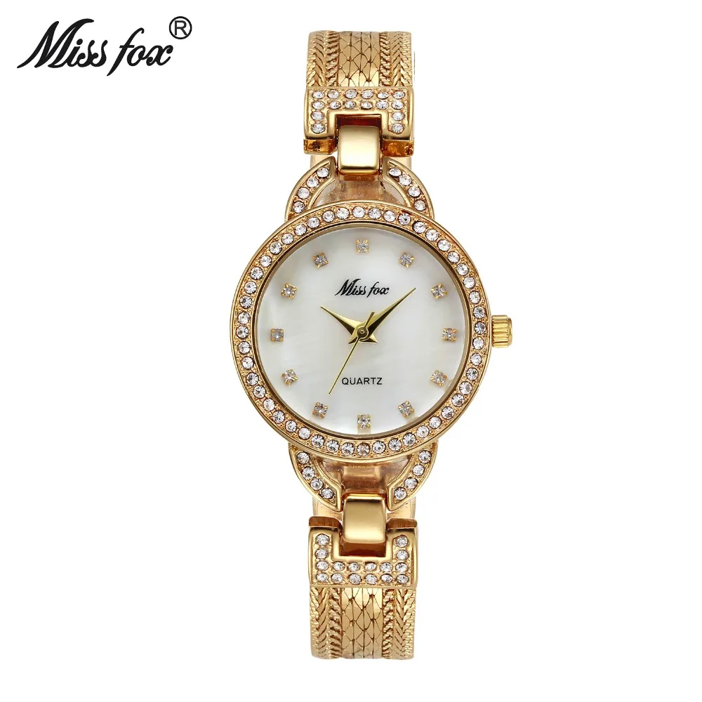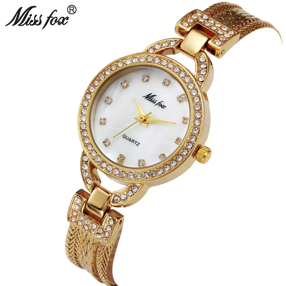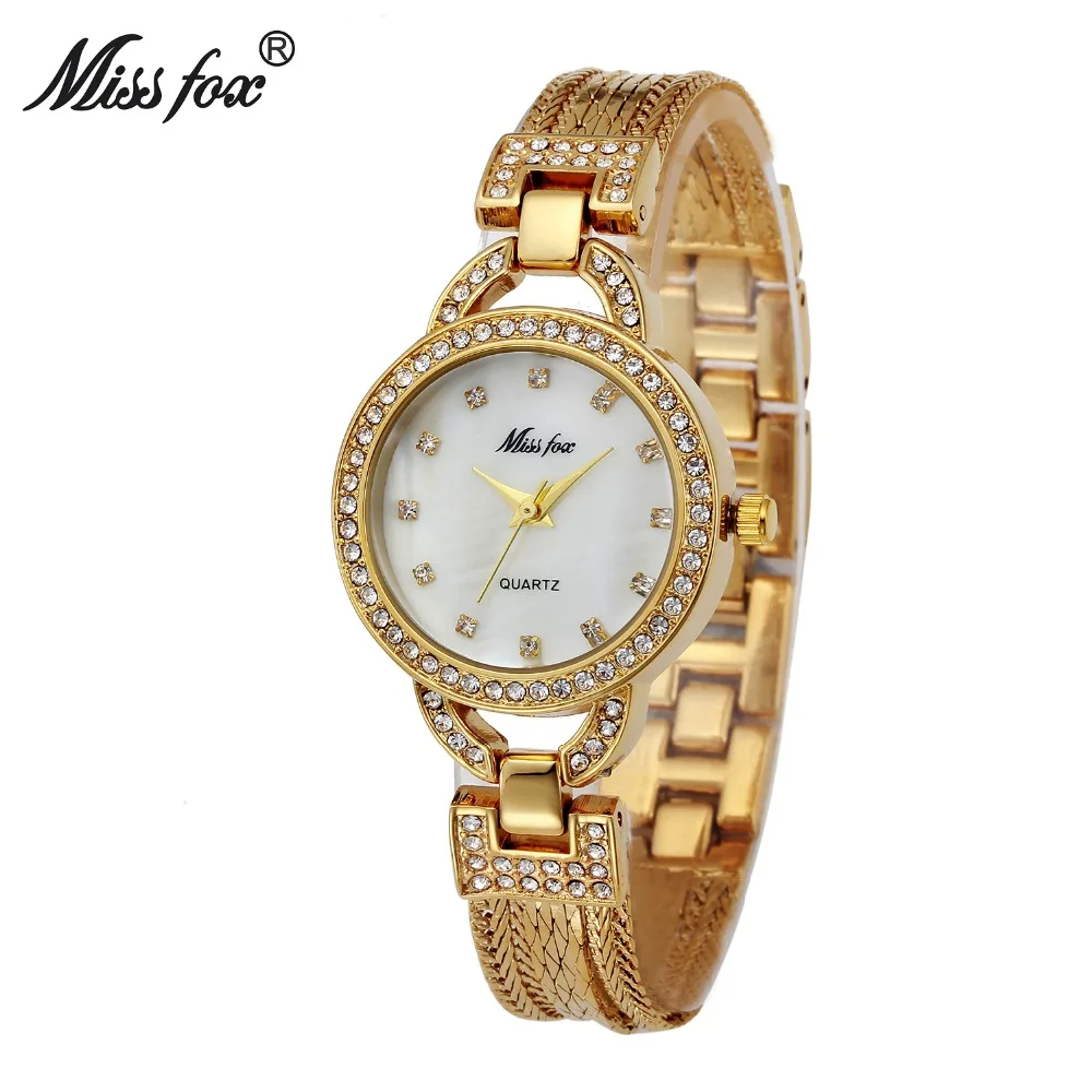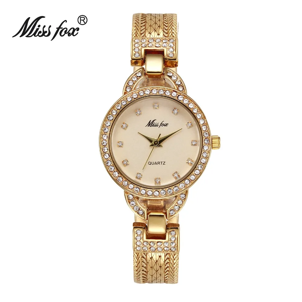 MISS FOX Women’s Bracelet Watch Gold Steel Chain Luxury Diamond Quartz Watch 2018 Fashion Casual Waterproof Clock Ladies Watch