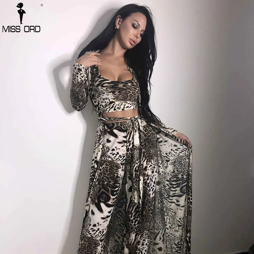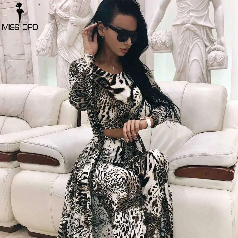 Missord 2018 Autumn And Winter Women Sexy Cloak Three Pcs Set Print Female Elegant Party Jumpsuit FT9704-1
