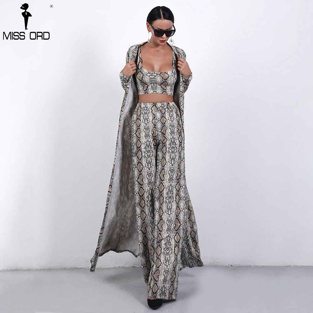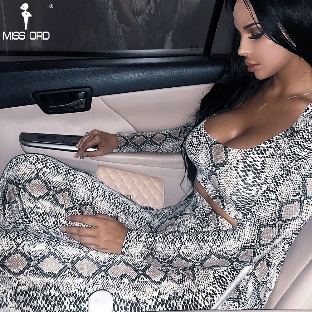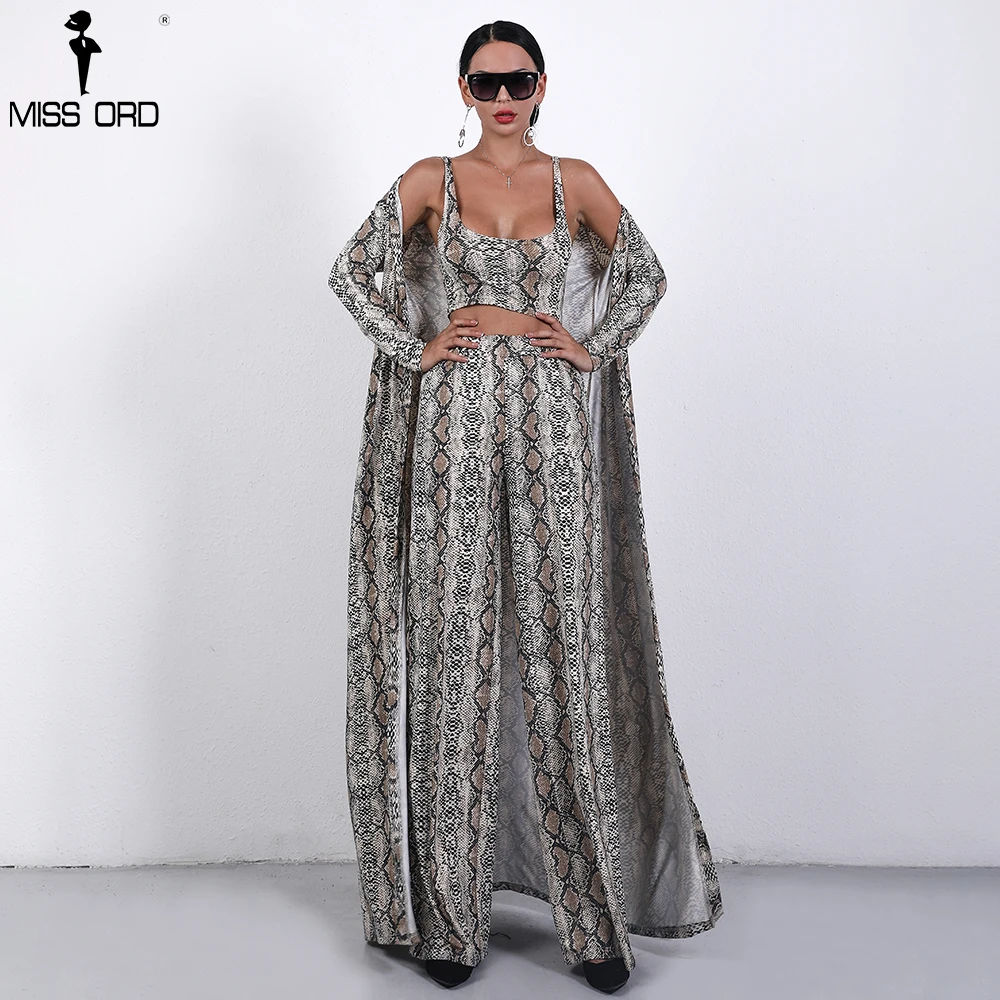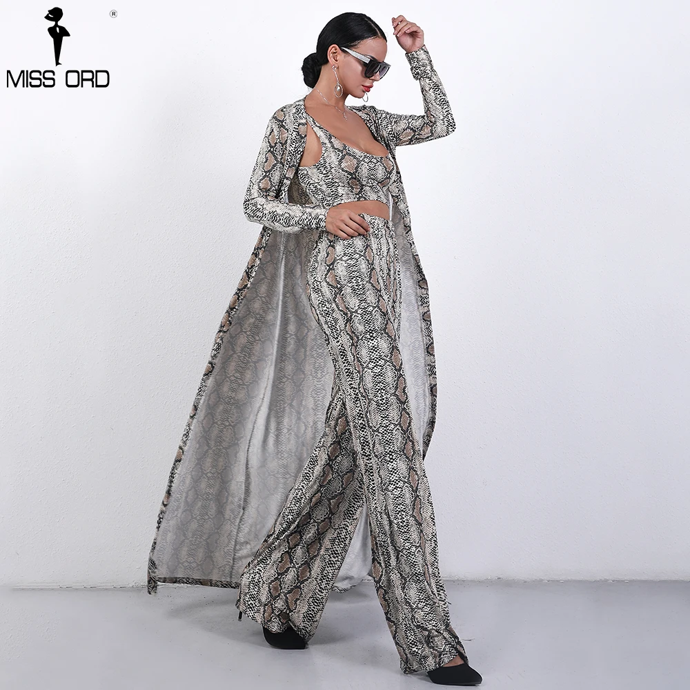 Missord 2018 Autumn and Winter Women Sexy Cloak Three Pcs Set Snake Print Female Elegant Party Jumpsuit FT9704
