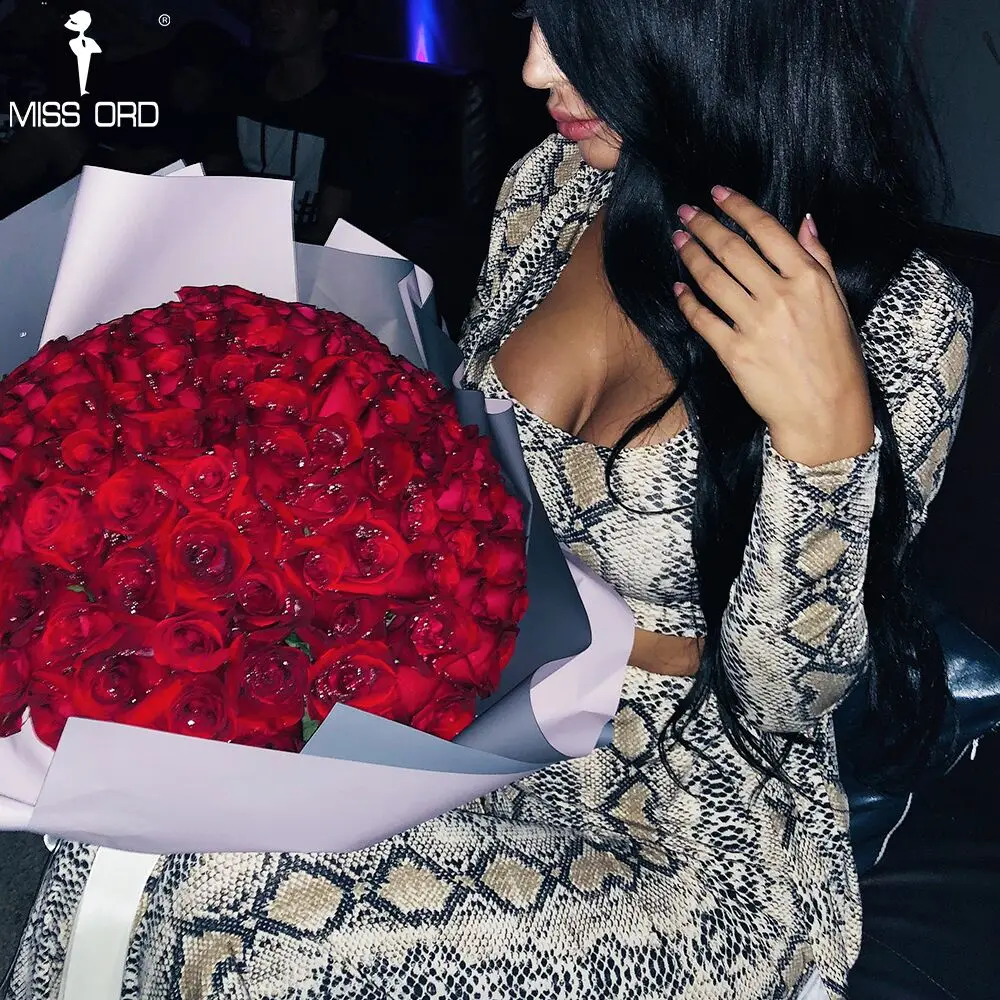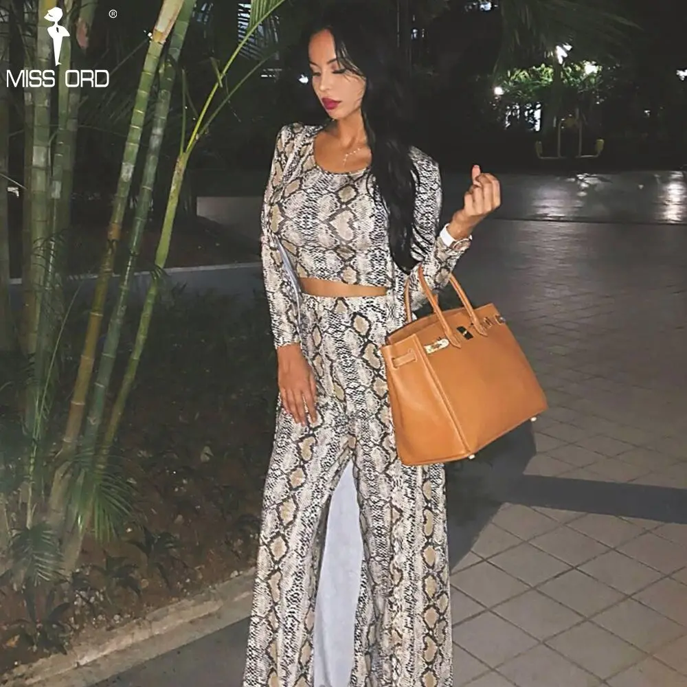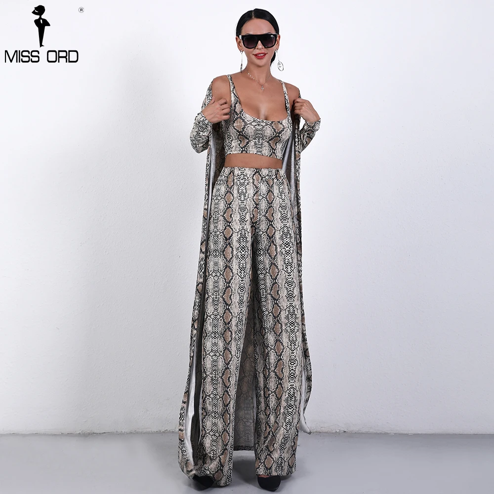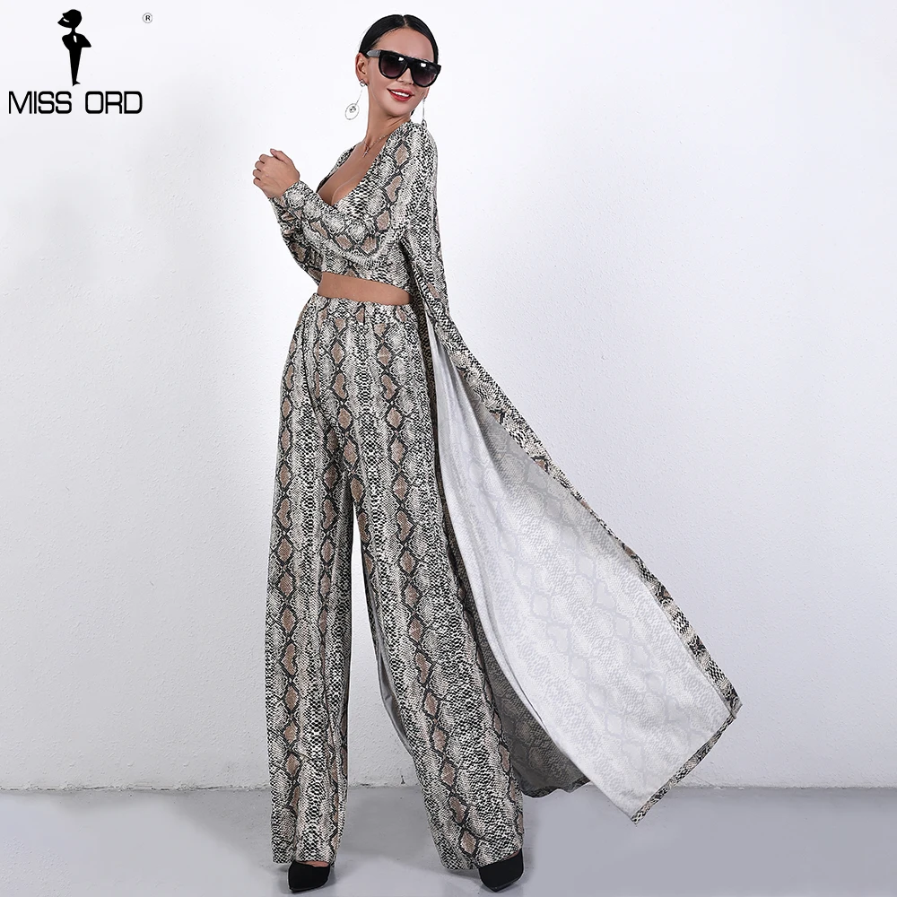 Missord 2018 Autumn and Winter Women Sexy Cloak Three Pcs Set Snake Print Female Elegant Party Jumpsuit FT9704