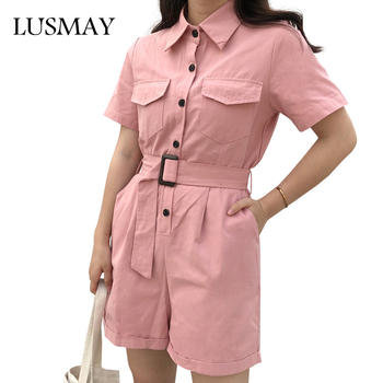 Missord 2018 Sexy Women Deep V Short Sleeve Striped Romper Belt Casual Playsuit NE1942