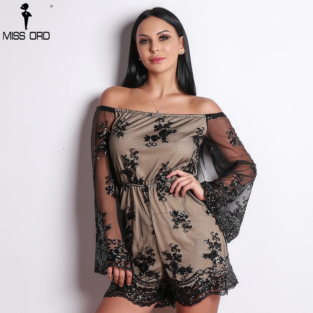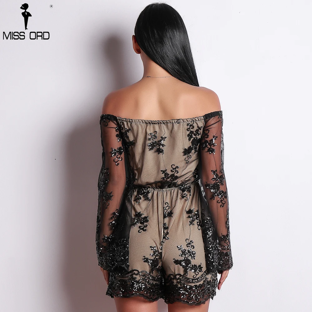 Missord 2018 Sexy Women One Shoulder Off Shoulder Jumpsuit Sequin Long Sleeve Playsuit FT9430