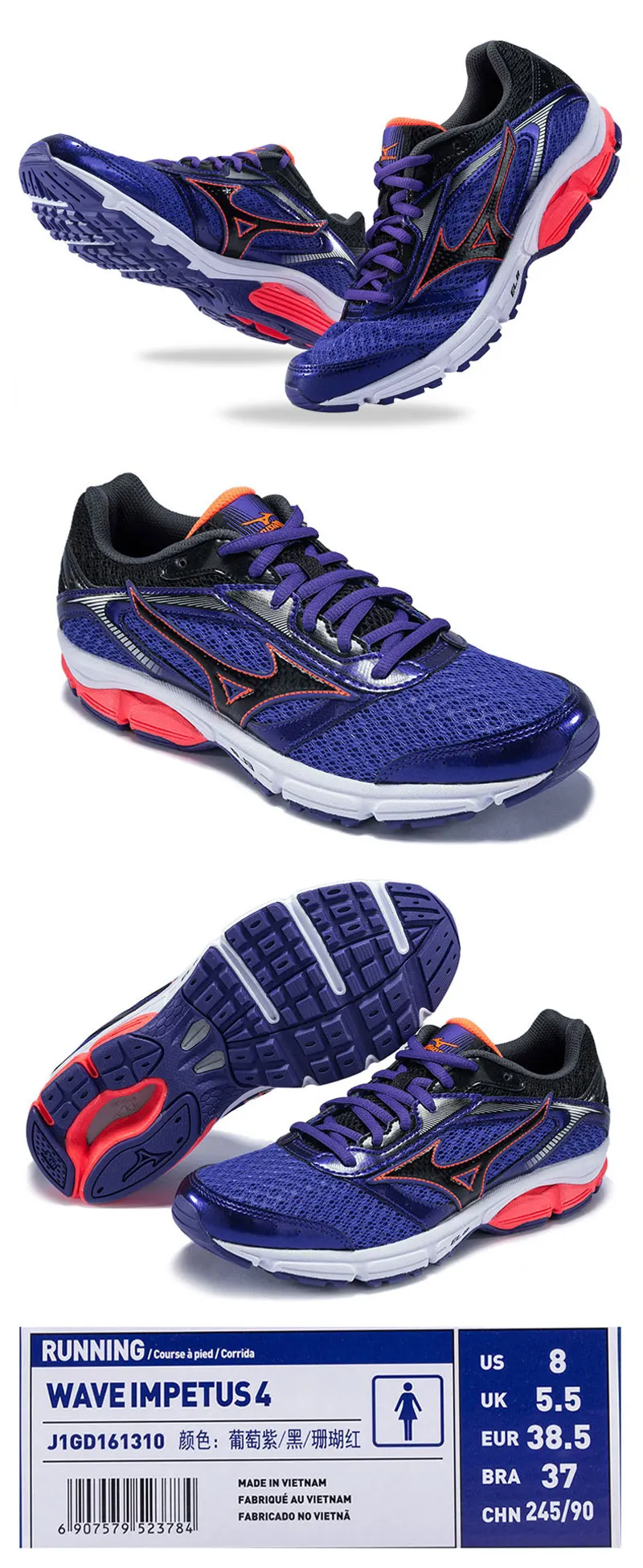 MIZUNO Women’s WAVE IMPETUS 4 Jogging Running Shoes Breathable Stable Sports Shoes Sneakers J1GD161304 XYP533
