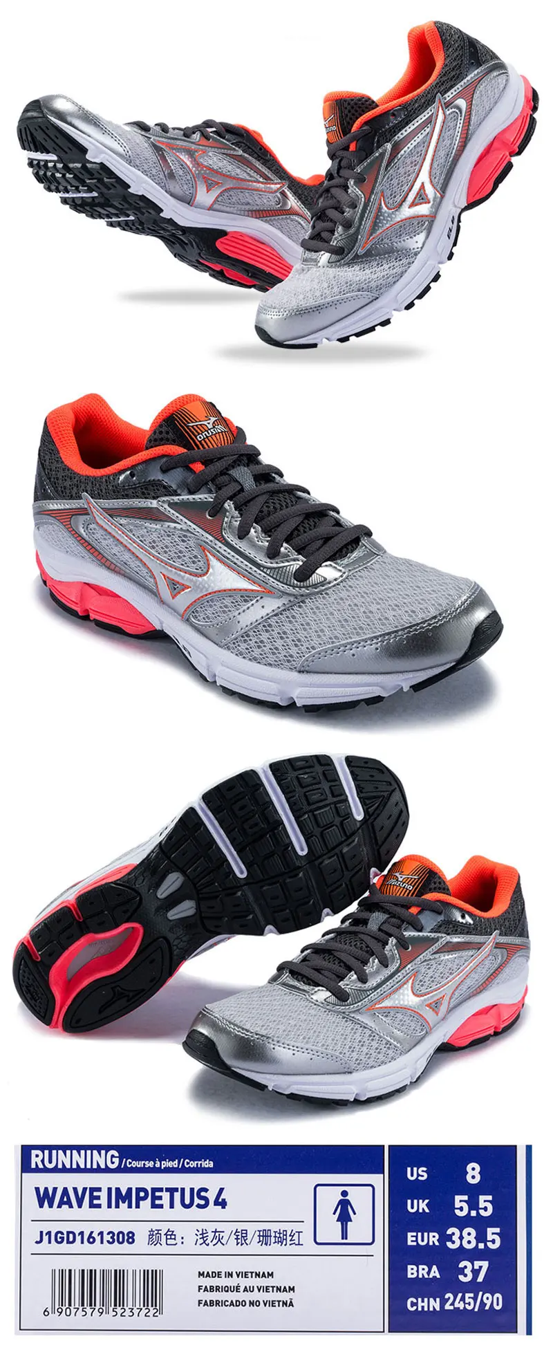 MIZUNO Women’s WAVE IMPETUS 4 Jogging Running Shoes Breathable Stable Sports Shoes Sneakers J1GD161304 XYP533