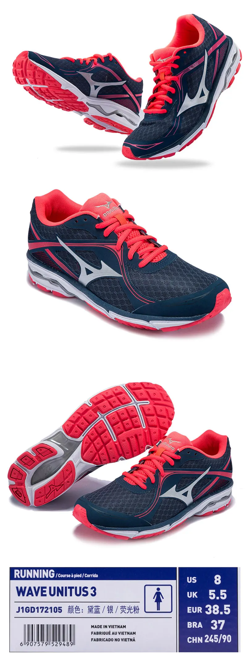 MIZUNO Women’s WAVE UNITUS 3 Jogging Running Shoes Breathable Cushioning Sports Shoes Sneakers J1GD172105 XYP515