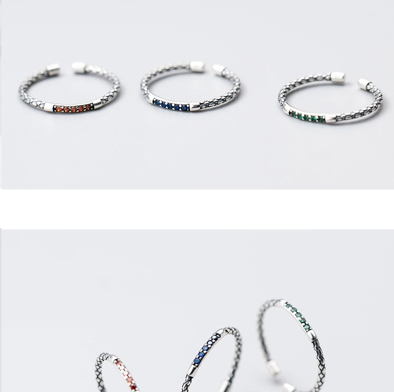 MloveAcc Vintage Thai Silver Snake Pattern Open Ring Women Fashion 925 Sterling Silver Rings Jewelry
